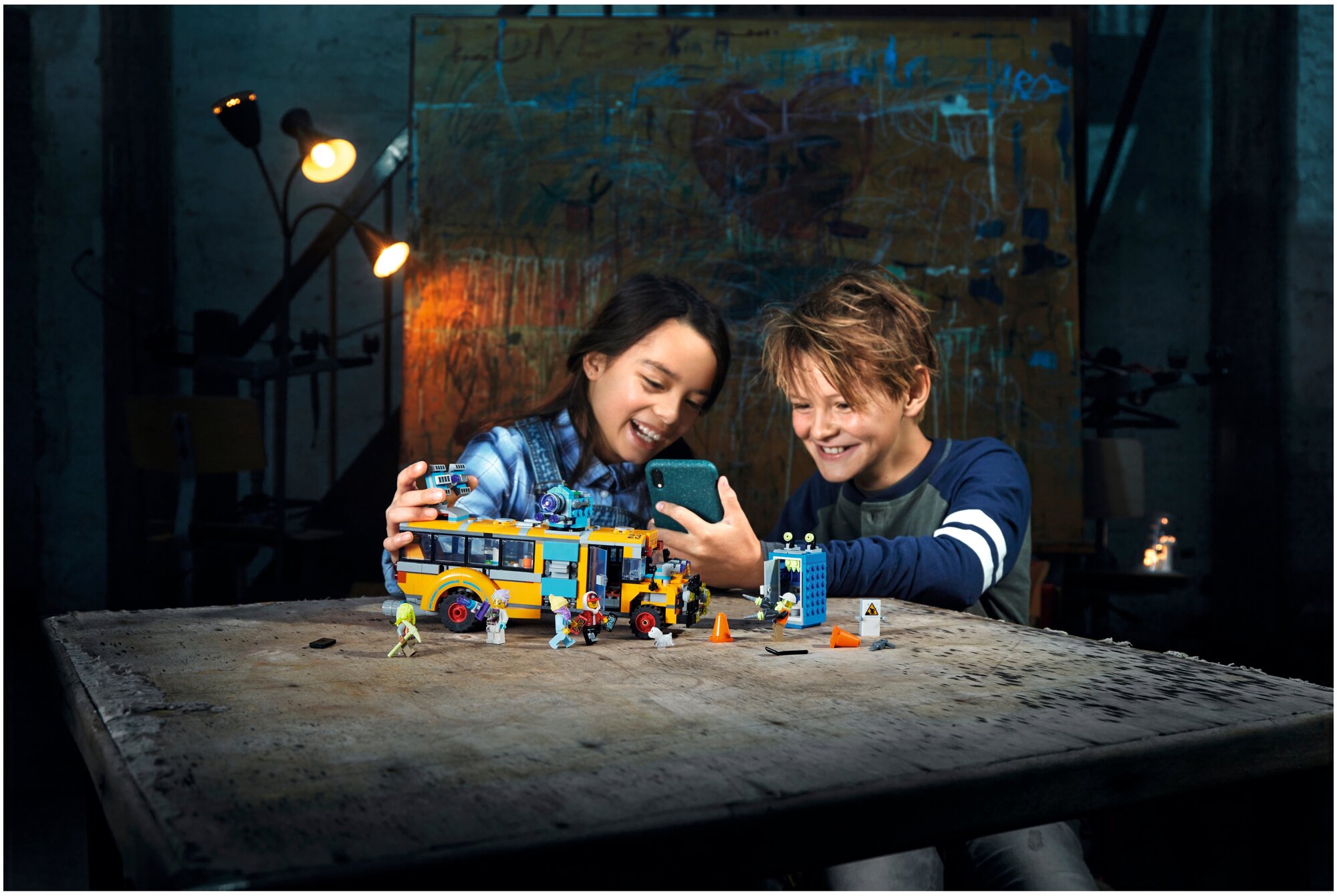- Загрузите приложение LEGO Hidden Side и наведите свой смартфон на «Автобус охотников за паранормальными явлениями — 3000», чтобы вдохнуть в него жизнь. Перемещайте телефон, чтобы исследовать постоянно меняющееся окружение модели.