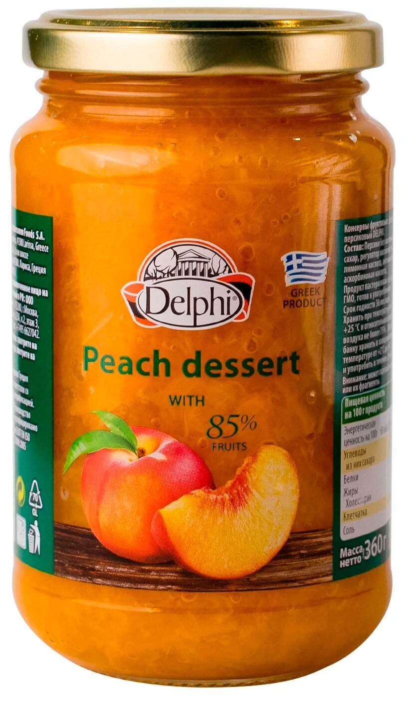 Десерт персиковый от производителя Delphi - находка для тех, кто отказался от калорийных сладостей в своем рационе. Фруктовое пюре из Греции имеет прекрасный состав. Балуя себя таким угощением, можно не переживать за стремительный набор веса. Лакомство едят прямо ложками или используют в виде топпинга к творогу, каше, йогурту и сырникам.