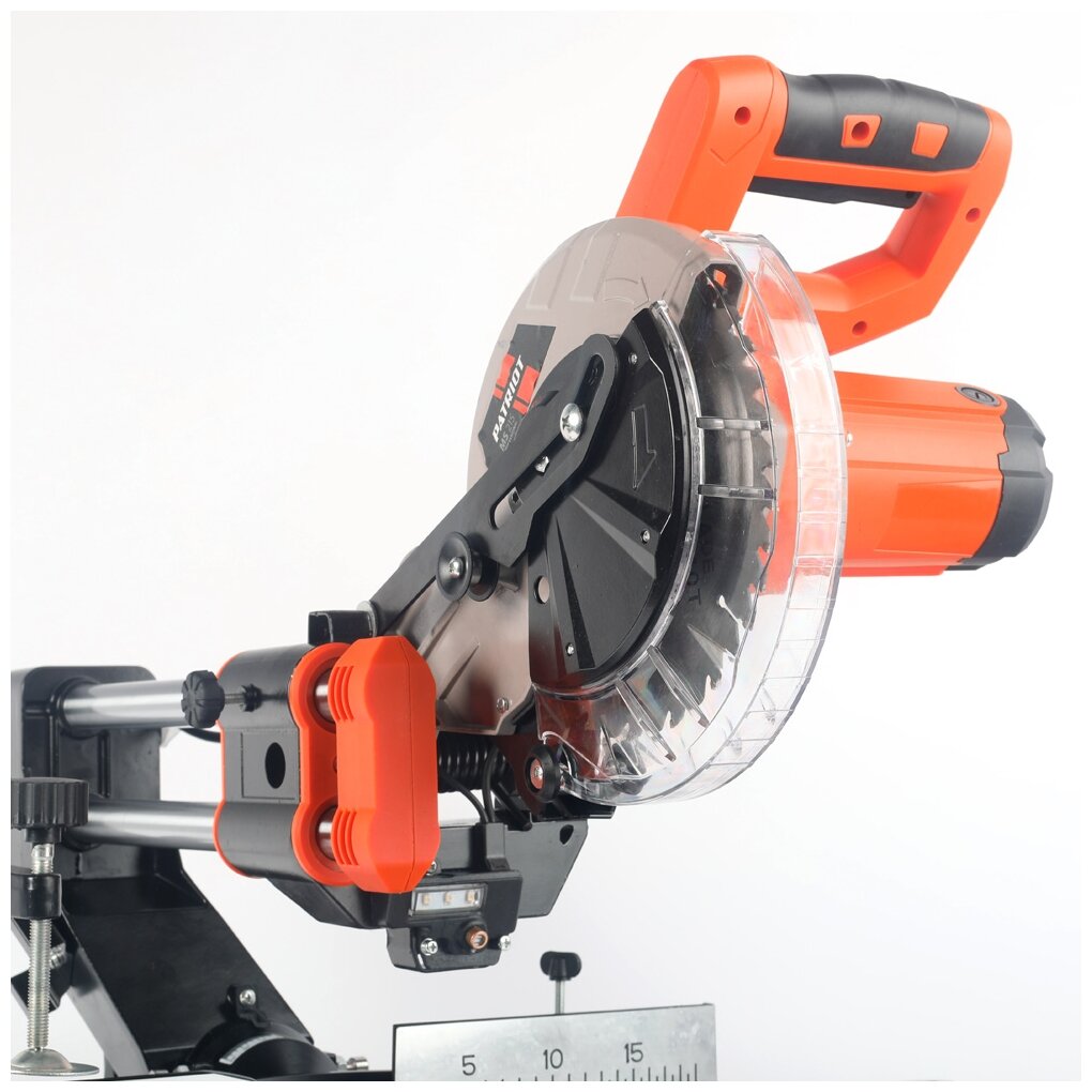 Компактная торцовочная пила **Patriot ** c прочным литым корпусом, гарантирующим длительный срок службы. Предназначена для распиловки и выборки материала из заготовок под заданным углом. Для удобства на рабочие поверхности нанесена метрическая разметка. Блокировка шпинделя позволяет легко менять пильные диски без демонтажа защитного кожуха. Надежную фиксацию заготовки сверху и впереди обеспечивают специальные зажимы. Для высокой точности пила оснащена лазерным маркером. D-образная рукоятка с мягкими накладками - для комфортной работы. Благодаря системе удаления пыли рабочее место будет оставаться чистым.