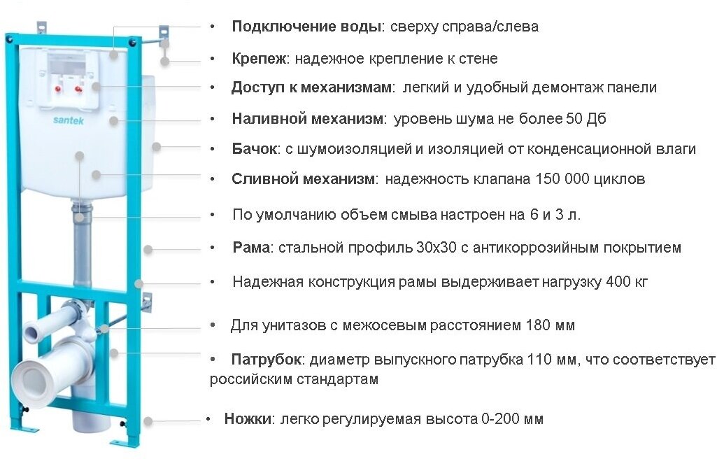Комплект унитаза Santek Нео с инсталляцией, белой клавишей смыва и сиденьем Soft Close - все необходимое в одной коробке.