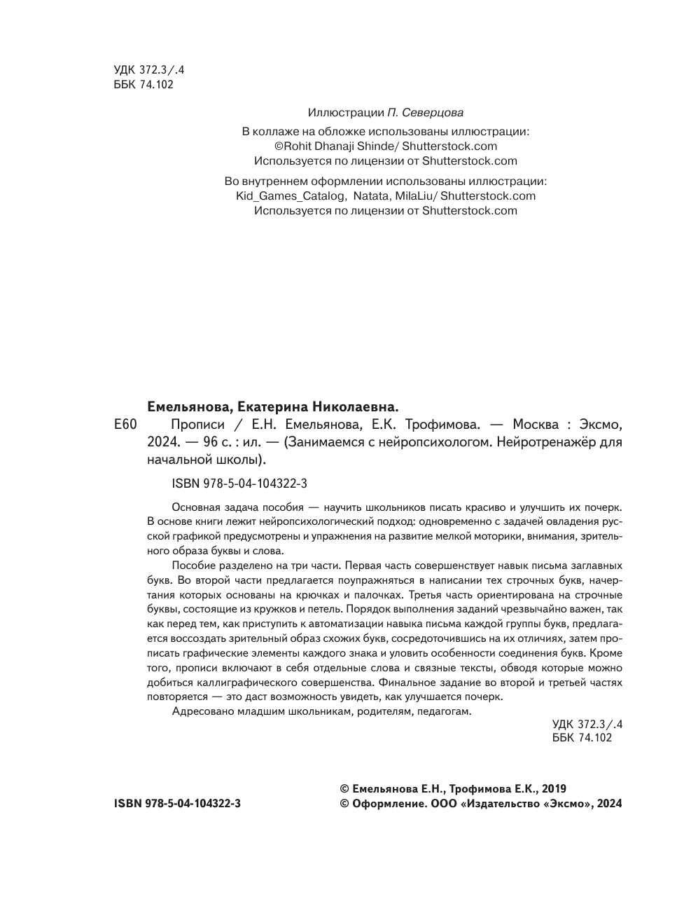 Книга: Прописи (Емельянова Екатерина Николаевна, Трофимова Елена Константиновна); ООО "Издательство "Эксмо", 2019