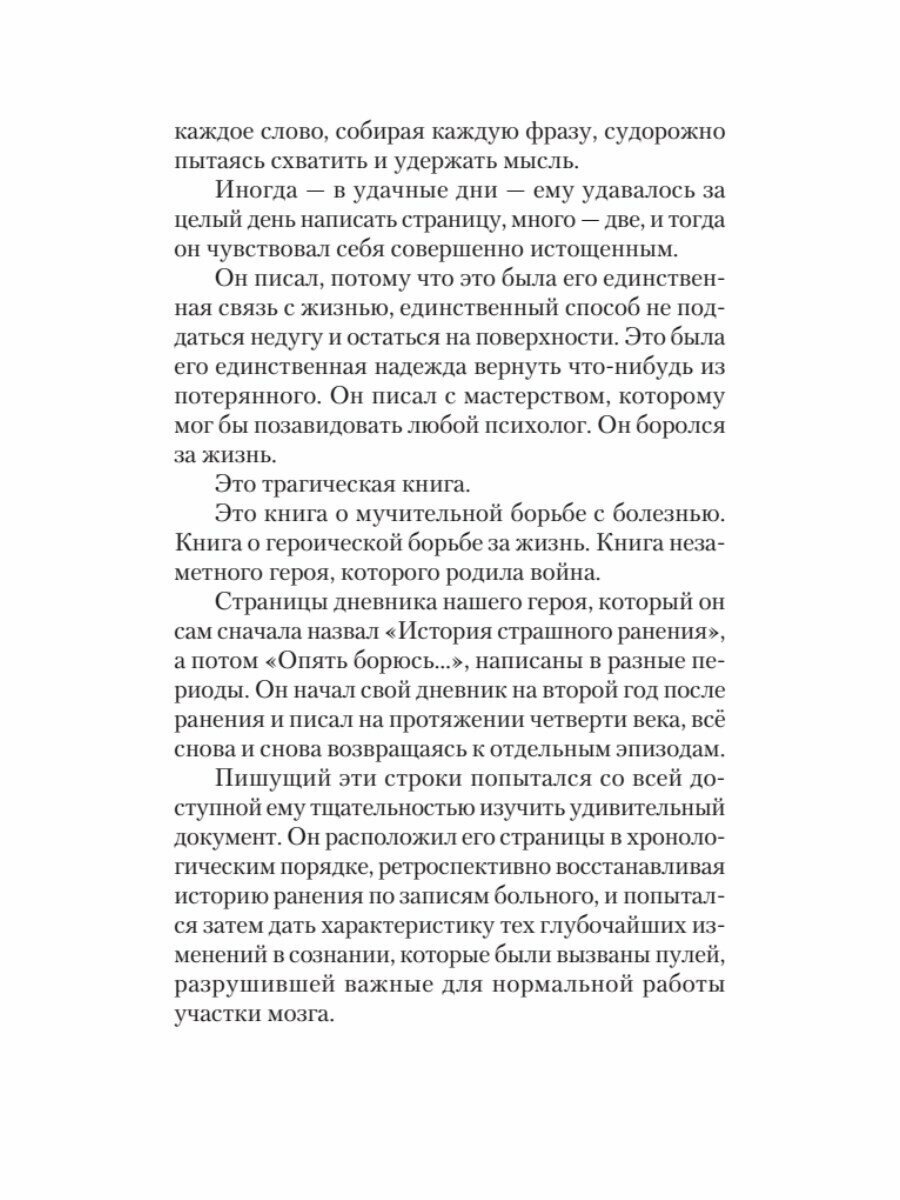 Читатель оценит эту книгу - книгу об одном живом человеке, который с таким упорством боролся за свой мозг, испытывая на каждом шагу непреодолимые трудности, но который в конечном счете вышел победителем из этой изнуряющей, неравной борьбы.