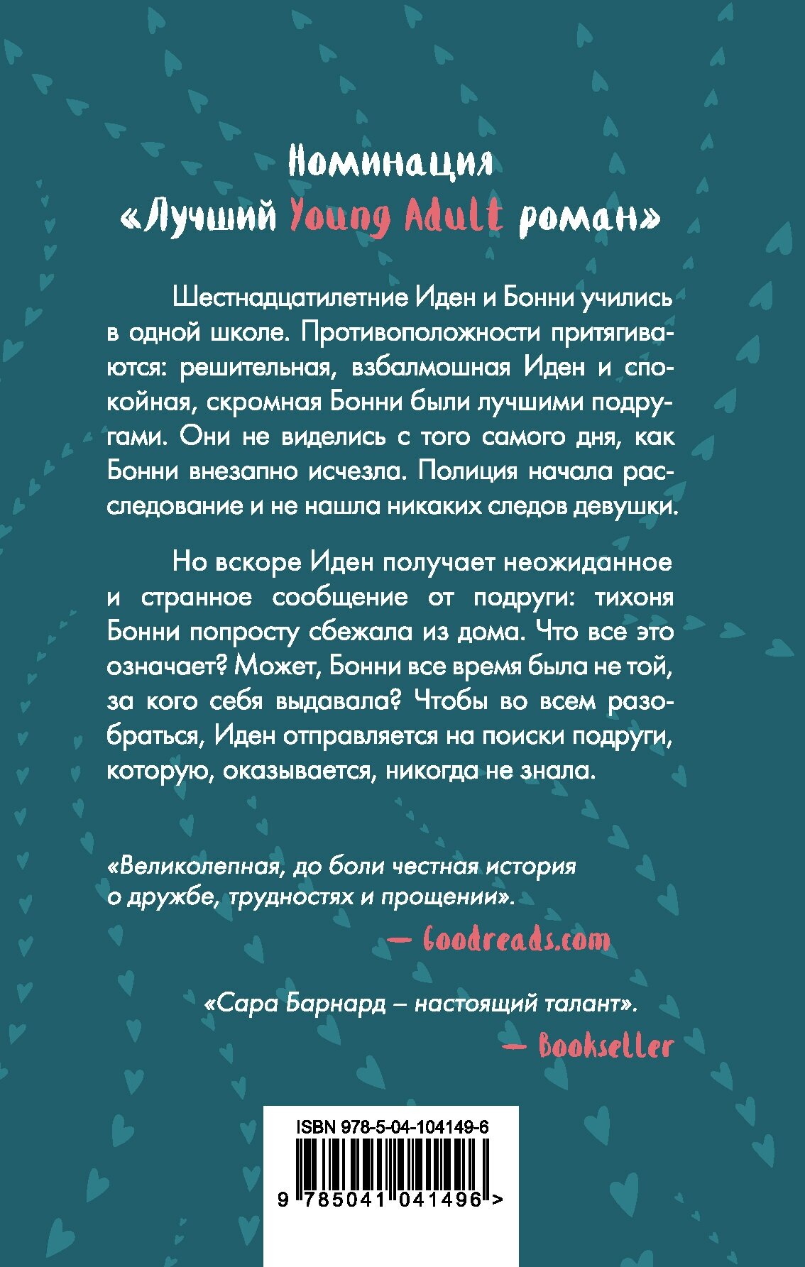 Но вскоре Иден получает неожиданное и странное сообщение от подруги: тихоня Бонни попросту сбежала из дома. Что все это означает? Может, Бонни все время была не той, за кого себя выдавала? Чтобы во всем разобраться, Иден отправляется на поиски подруги, которую, оказывается, никогда не знала.