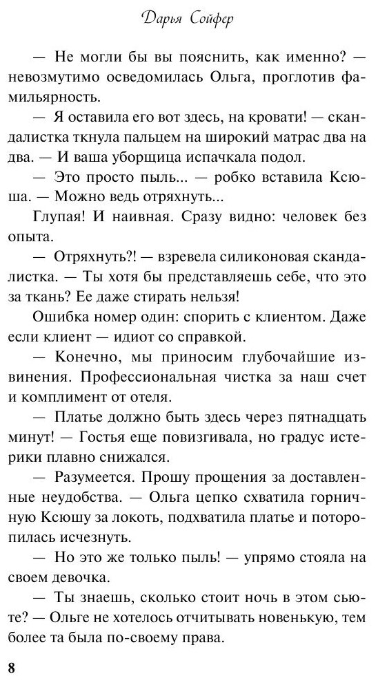 На мой взгляд, Дарья Сойфер - одна из самых интересных и многообещающих российских писательниц. Из под её пера выходят книги пусть и не с сильно замысловатым сюжетом, но зато всегда отражающие наши повседневные печали. Карьера или любовь? Слепо следовать за голосом разума или прислушаться к шепоту своего сердца? На эти и другие вопросы вы найдете ответы в этой легкой и очень интригующей истории.