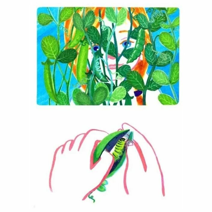 Красотень! И вот так сходу в голову не приходит, есть ли вообще другие подобные книги сейчас. Не книжки-картинки, не виммельбухи, а именно книги БЕЗ СЛОВ! Это уже не только книга, а настоящее искусство, простор для фантазии и разных трактовок. А разворот с иллюстрацией того, как Кузнечик, сидящий в банке, видит кота, — меня просто поразила!!! Не знаю, для какого возраста эта книга. Мне кажется, что возрастные границы тут ставить нельзя. Она для всех, кто понимает, что книга — это искусство и хочет приобрести новый эстетический и читательский опыт.