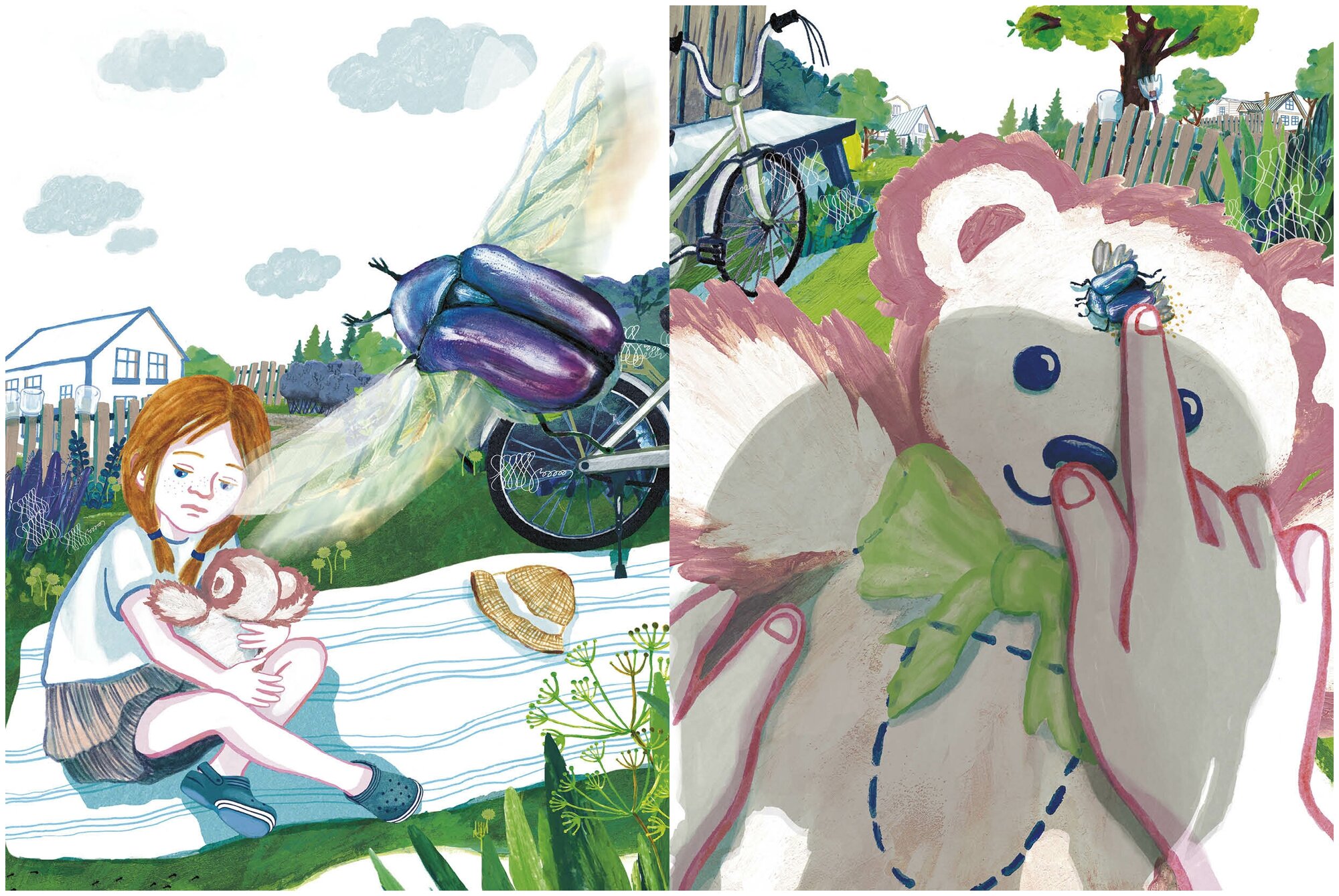 Если помните, в нашем советском детстве были мультфильмы без слов. Один из них – «Девочка и дельфин». Историю там рассказывали рисунки и пронзительная музыка Алексея Рыбникова. Книга «Кузнечик» состоит только из рисунков, но музыка в ней присутствует незримо – столь эмоциональны иллюстрации Тани Уховой. И как же здорово листать эту книгу именно сейчас, осенью: открываешь, и тебе в лицо брызги солнца, тепла! Настоящий кусочек лета, которое теперь можно возвращать по заказу – достаточно перелистнуть очередную страницу.