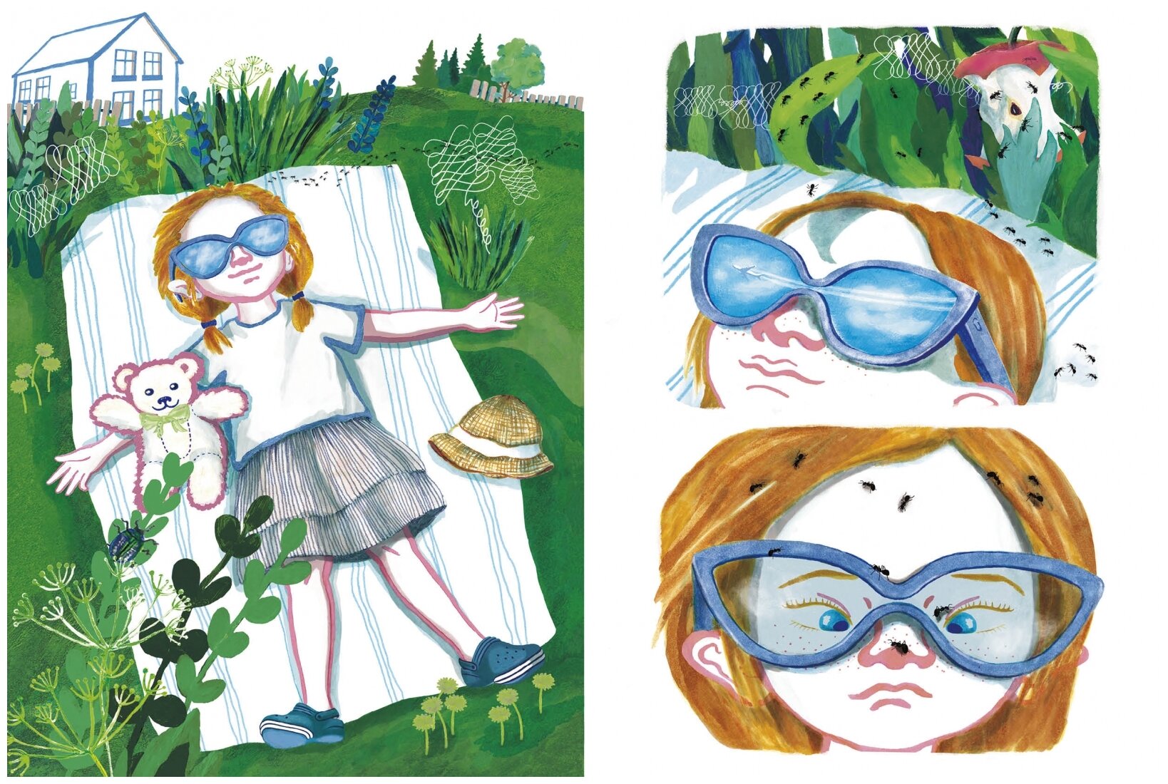 Лето. Дача. Маленькой Тане скучно. Позагорать, что ли? Муравьи проложили дорожку прямо через подстилку. Ничего себе, на нос залезли.