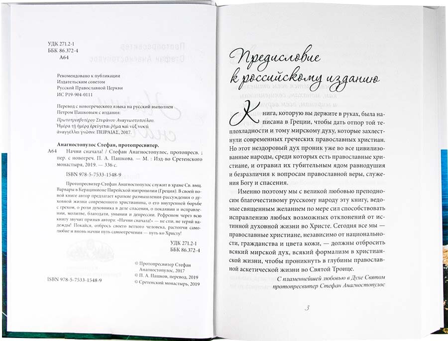 Книга: Начни сначала! (Анагностопулос Стефан, протопресвитер); Издательство Сретенского монастыря, 2019