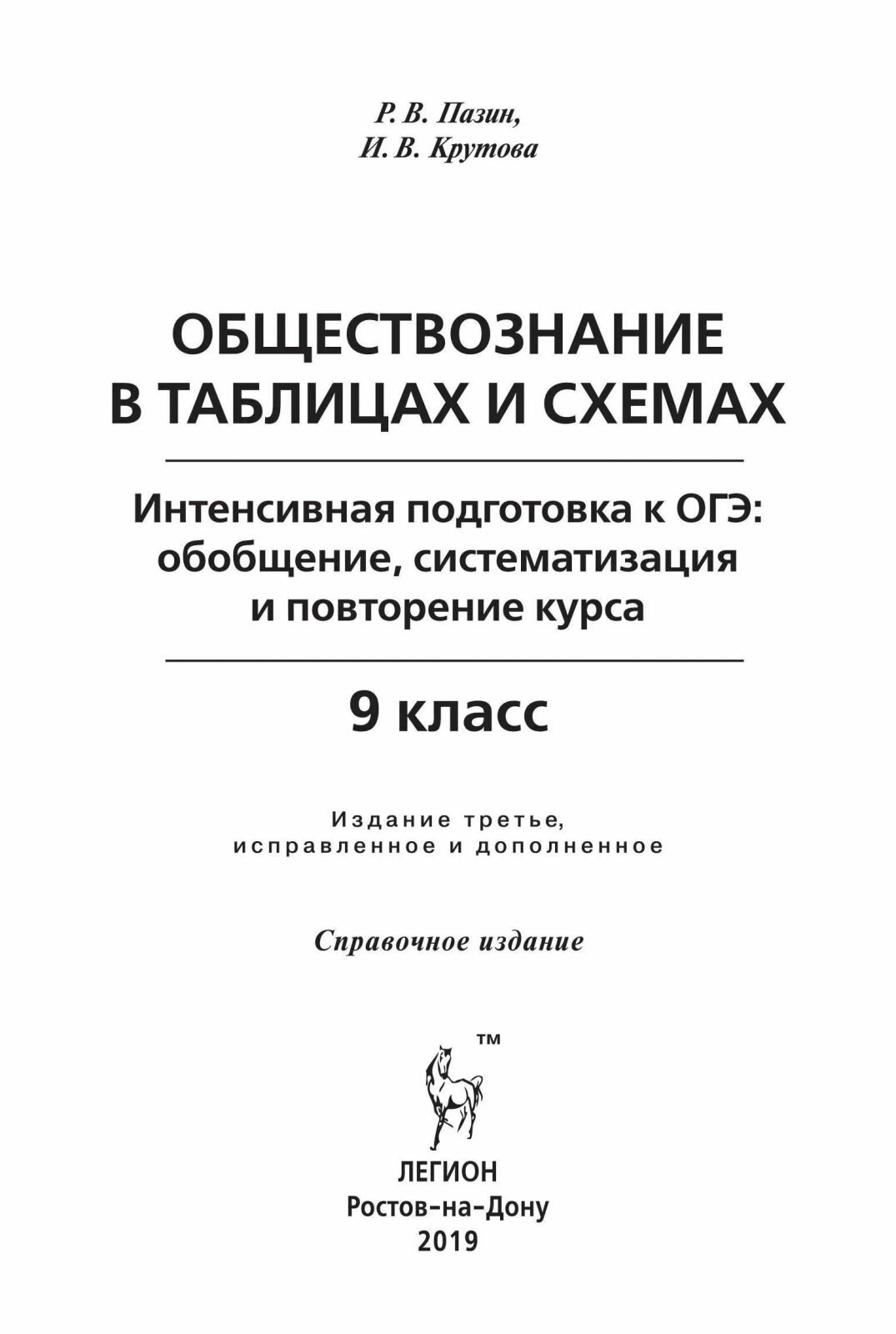 ОГЭ Обществознание. 9 класс. В схемах и таблицах (Пазин Роман Викторович, Крутова Ирина Владимировна); Легион, 2023