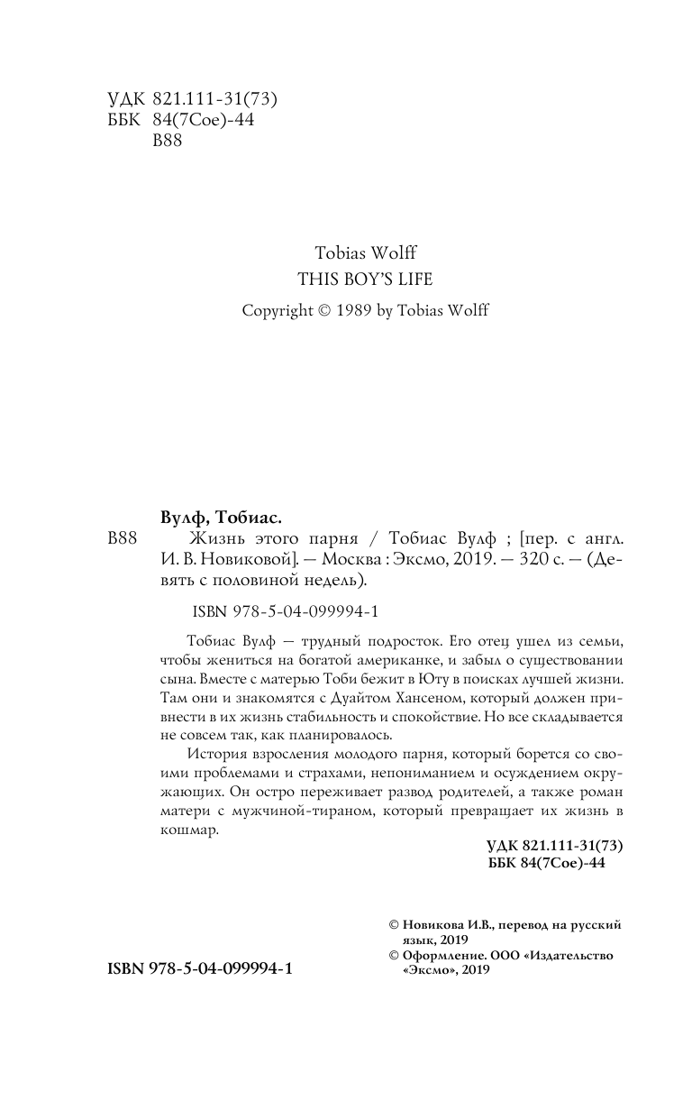 Книга: Жизнь этого парня (Вулф Тобиас); ООО "Издательство "Эксмо", 2019