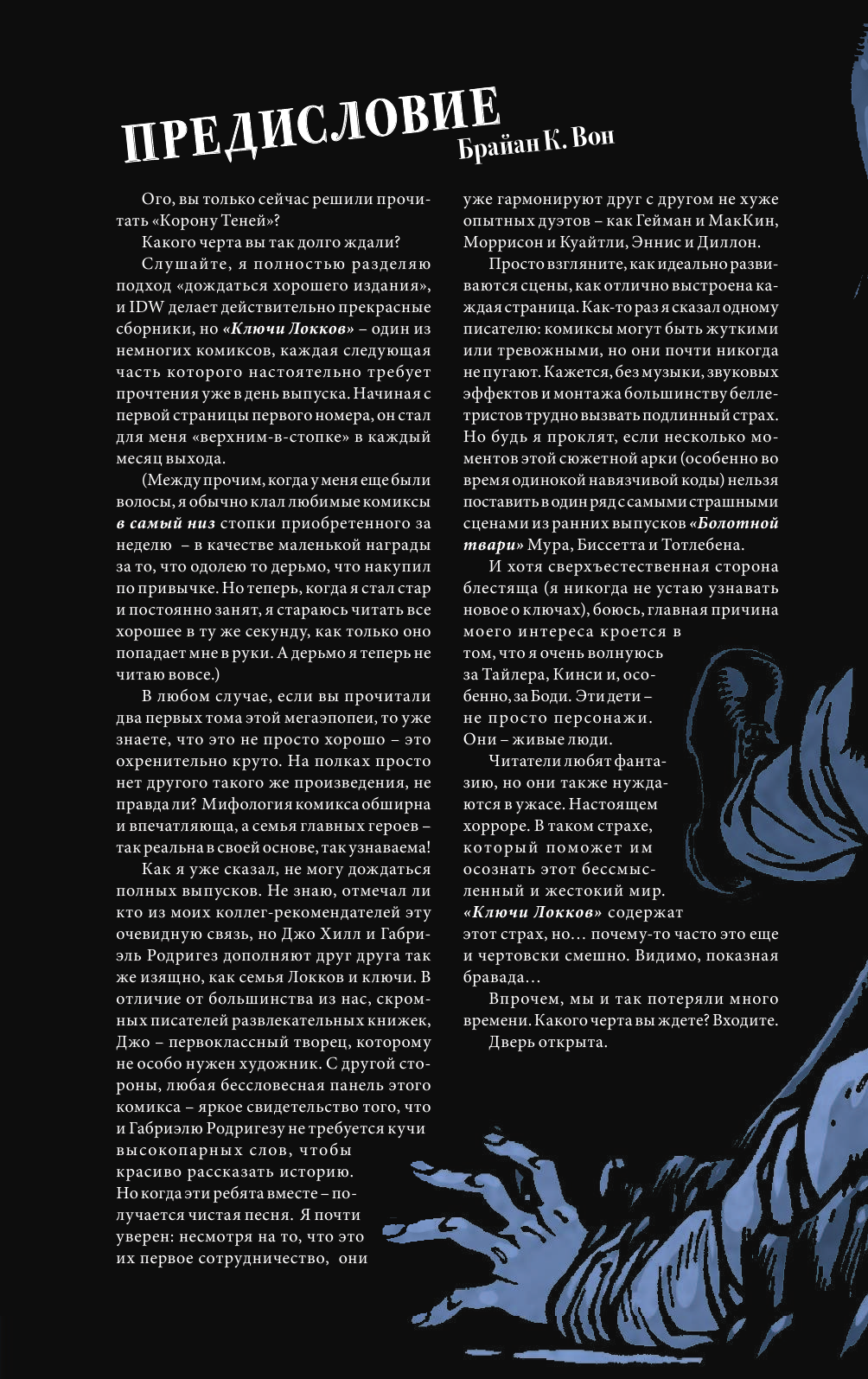 Третий том продолжает серию мистических хорроров о семье Локков и включает в себя предисловие сценариста и автора комиксов Брайана К. Вона и уникальную галерею иллюстраций Габриэля Родригеза.