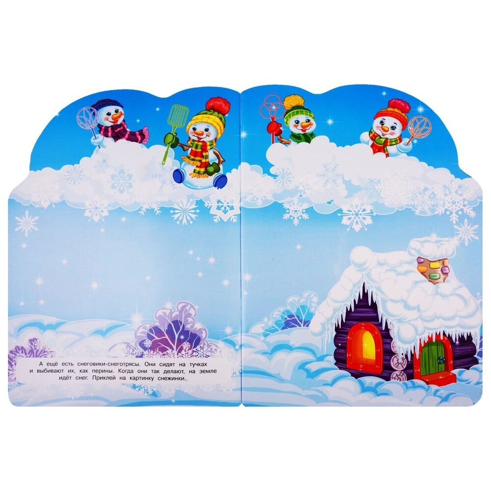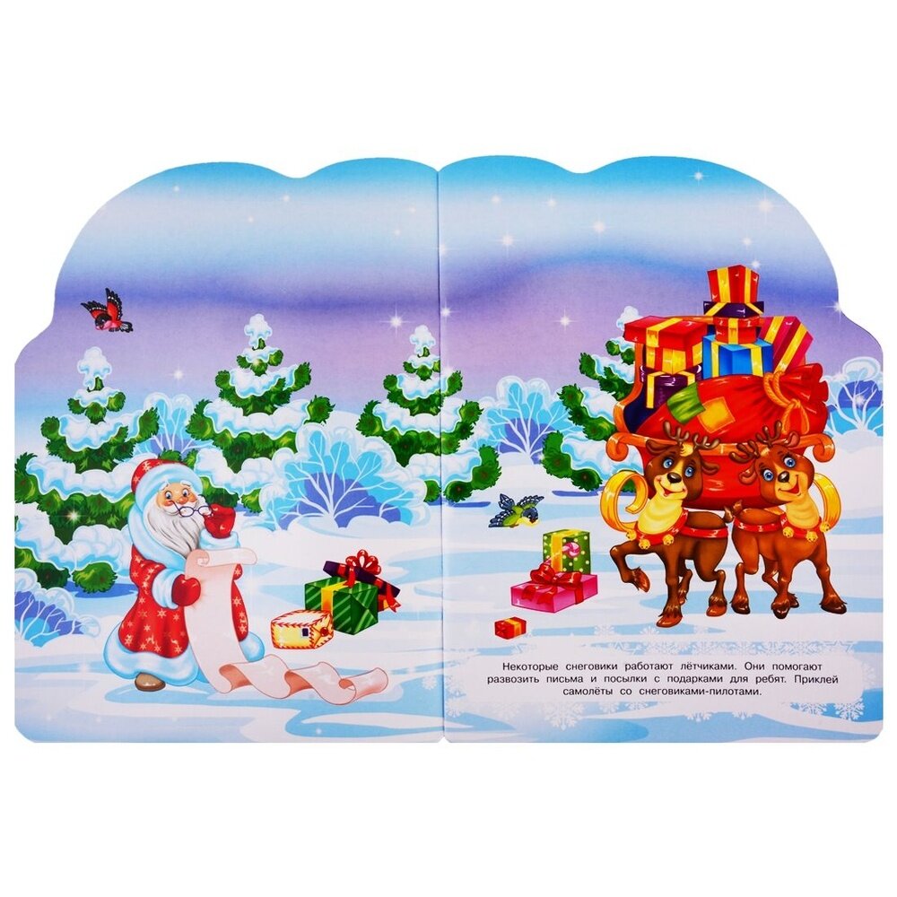 Хорошая зимне-новогодняя книжка про снеговиков с крупными наклейками. Подойдет детям 1-4 лет. А для развлечения и детям постарше.