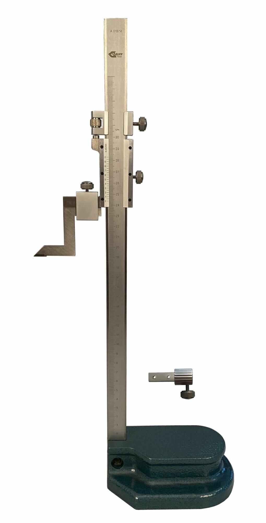 Предназначен для измерений линейных размеров, а также разметки. Оснащен устройством точной подачи. Диапазон измерений 0-300 мм. Цена деления 0,05 мм. Твердосплавный наконечник измерительной лапки. Производство Guilin Measuring & Cutting Tool Co, Ltd.