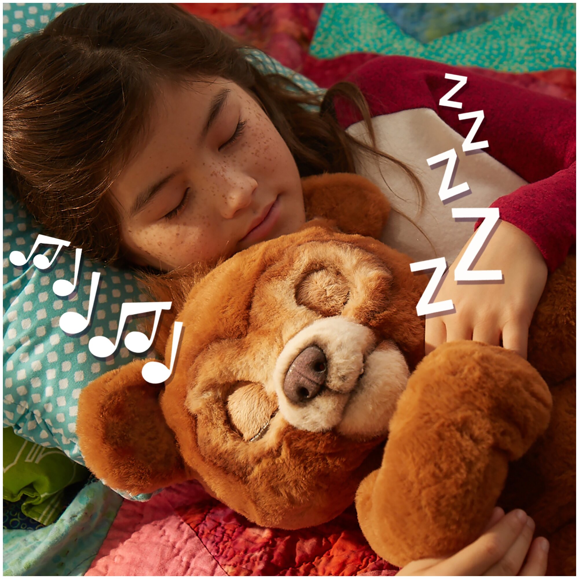 В ночном режиме этот закрывает глаза, издает сонные звуки и играет одну из четырех мелодий, рассчитанных на 5 минут. Медвежонок двигает глазами, носом, ртом, тем самым меняя выражение лица.