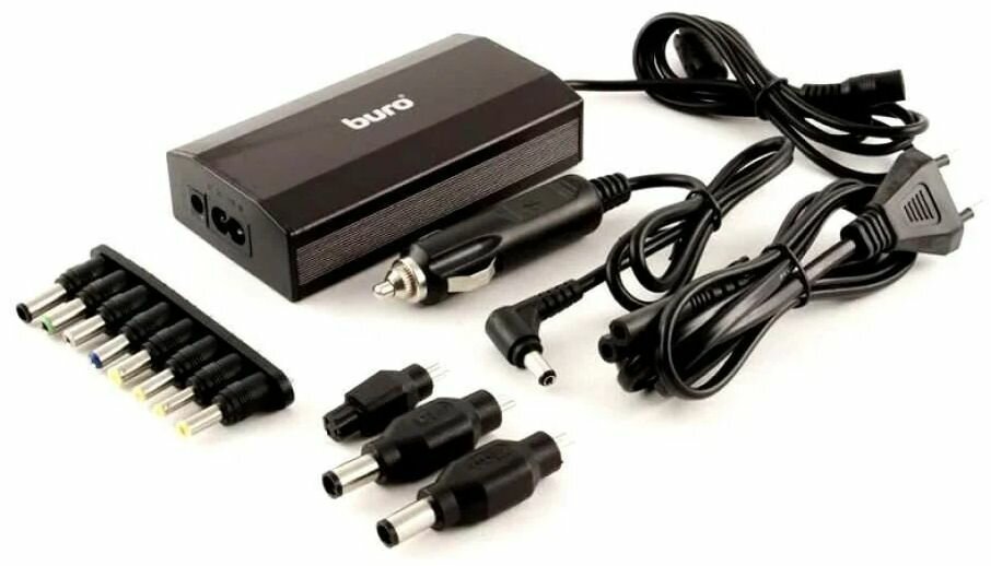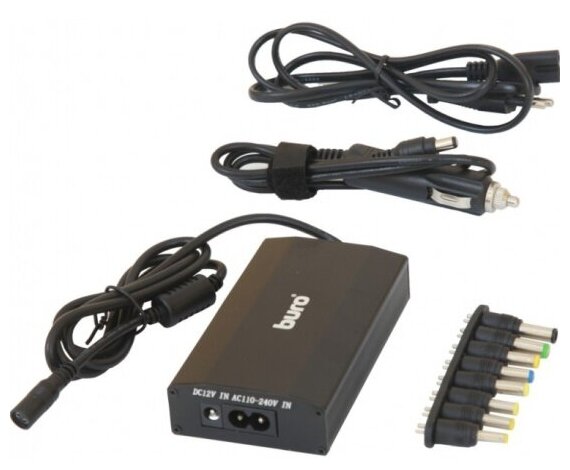 Универсальный адаптер для ноутбуков мощностью 65 ватт и USB-портом для зарядки мобильных телефонов и планшетов. В комплекте входят 8 сменных штекеров, подходящих к большинству ноутбуков. Выбор мощности для питания происходит в ручном режиме.