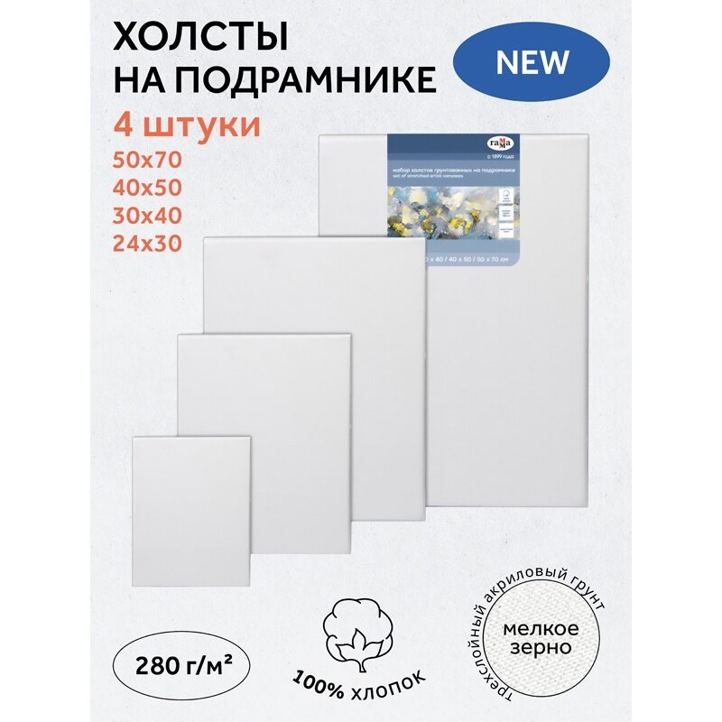 На сегодняшний день товар «Гамма Набор холстов на подрамнике Студия мелкое зерно 4 шт.» можно купить с кешбеком в 1 магазине: Яндекс.Маркет
