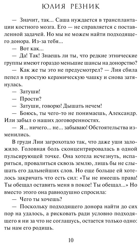 Когда Лию разлучили с сыном, она думала, что ее жизнь закончена. Она почти умерла, став тенью без чувств и эмоций. Когда Лие сказали, что сын может выжить только благодаря ей, она воскресла. А вместе с нею воскресло прошлое: счастливая жизнь с любимым мужем, затерявшаяся на задворках памяти… Часть души, которую она ампутировала вместе с любовью к мужу, воскресла и потянулась к нему.