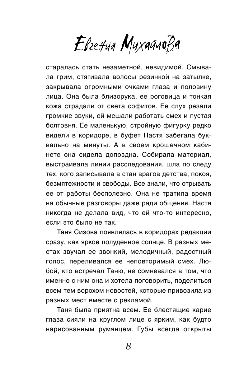 Для меня книги Евгении Михайловой всякий раз неожиданный и чудесный подарок. Все читаю очень пристрастно. Роман кажется куском моей жизни, какого не было, но это могло бы быть. Каждая новелла - короткое, но полное погружение в чужие характеры и судьбы. И полноценный, завершенный, острый сюжет.