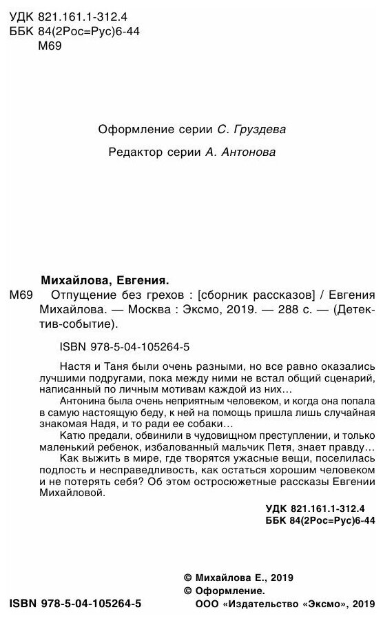 Книга: Отпущение без грехов (Евгения Михайлова); Эксмо, Редакция 1, 2019