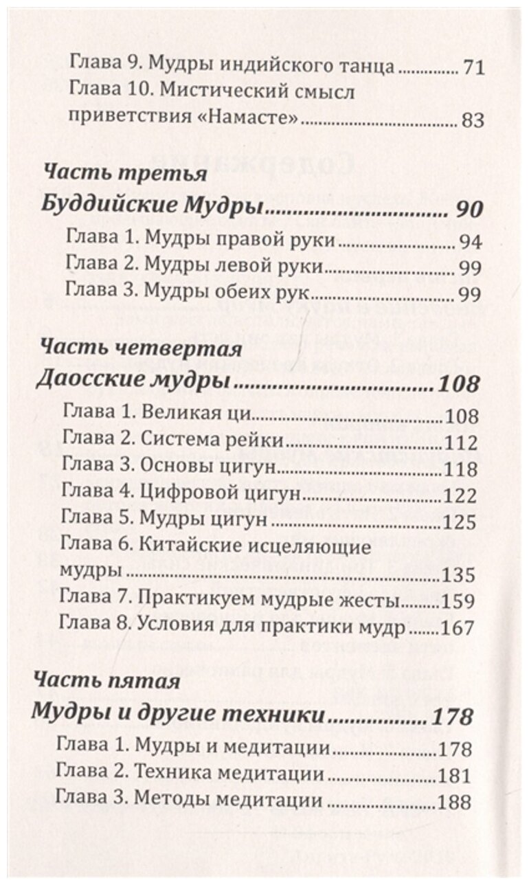 Автор рассказывает историю мудр, их значение в зависимости от "дорабатывающих" мудры обществ и грозную силу мудр. Очень подробно и обстоятельно разбирается взаимосвязь мудр с чакрами, мантрами, пятью элементами, дошами. Считаю, это очень полезно для осознанного применения мудр. Также подробно описываются медитации и дыхание во время исполнения мудр для усиления воздействия. За что отдельное спасибо автору.