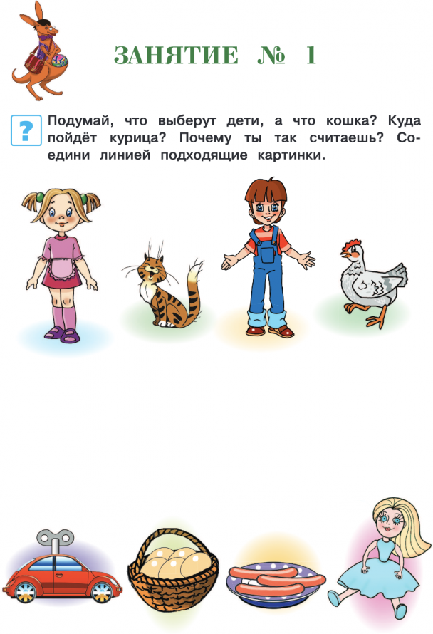 Практическое пособие, предназначено для занятий взрослого с ребёнком 2-3 лет с целью развития у малыша воображения, мышления и логики. Выполняя увлекательные упражнения, ребёнок будет подбирать к каждому коврику подходящую заплатку; соединять логические пары; решать, что находится внутри изображенных предметов; зачеркивать лишнее в каждом ряду; дорисовывать фантастических рыб; определять последовательность; подбирать машину для каждого животного, ориентируясь на цвет, а также рассуждать и анализировать, думать и делать логические выводы.