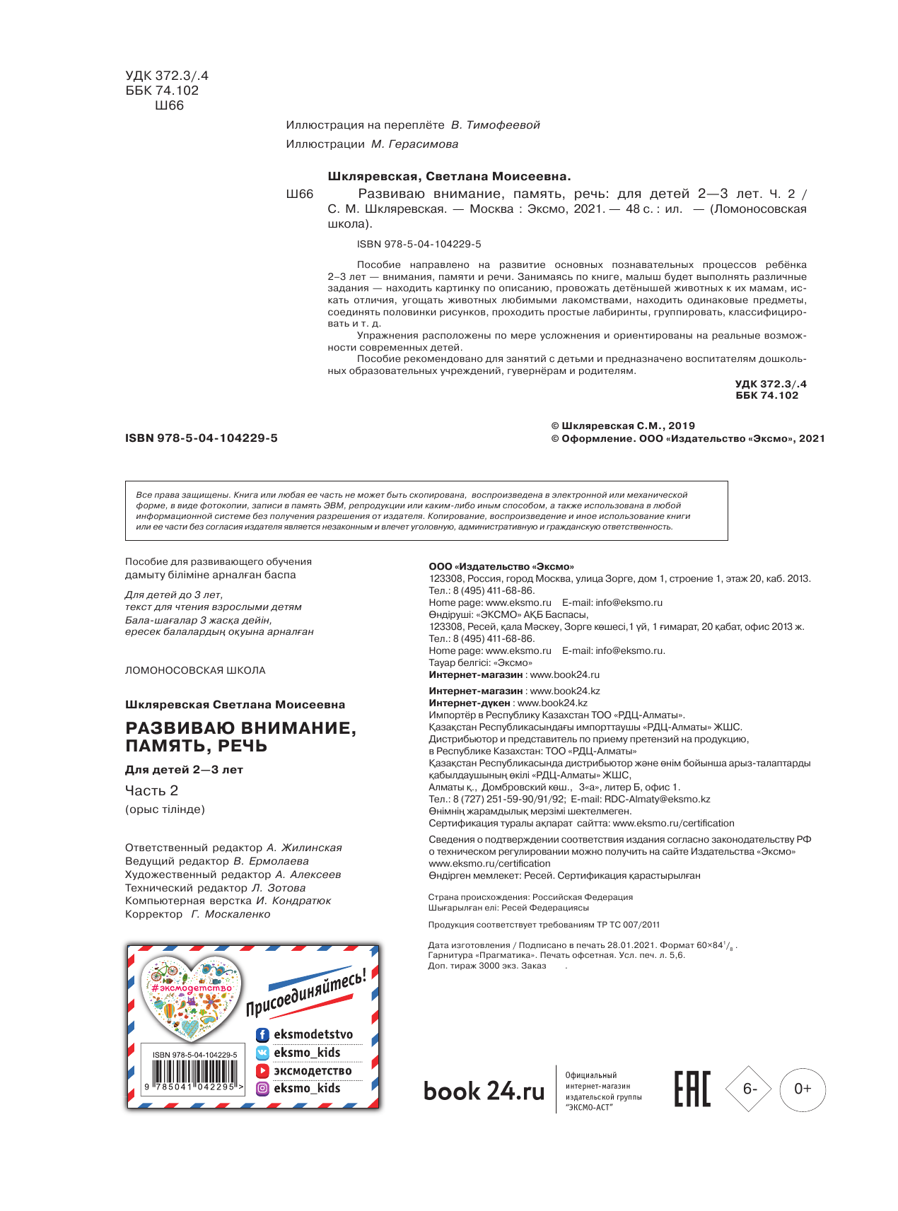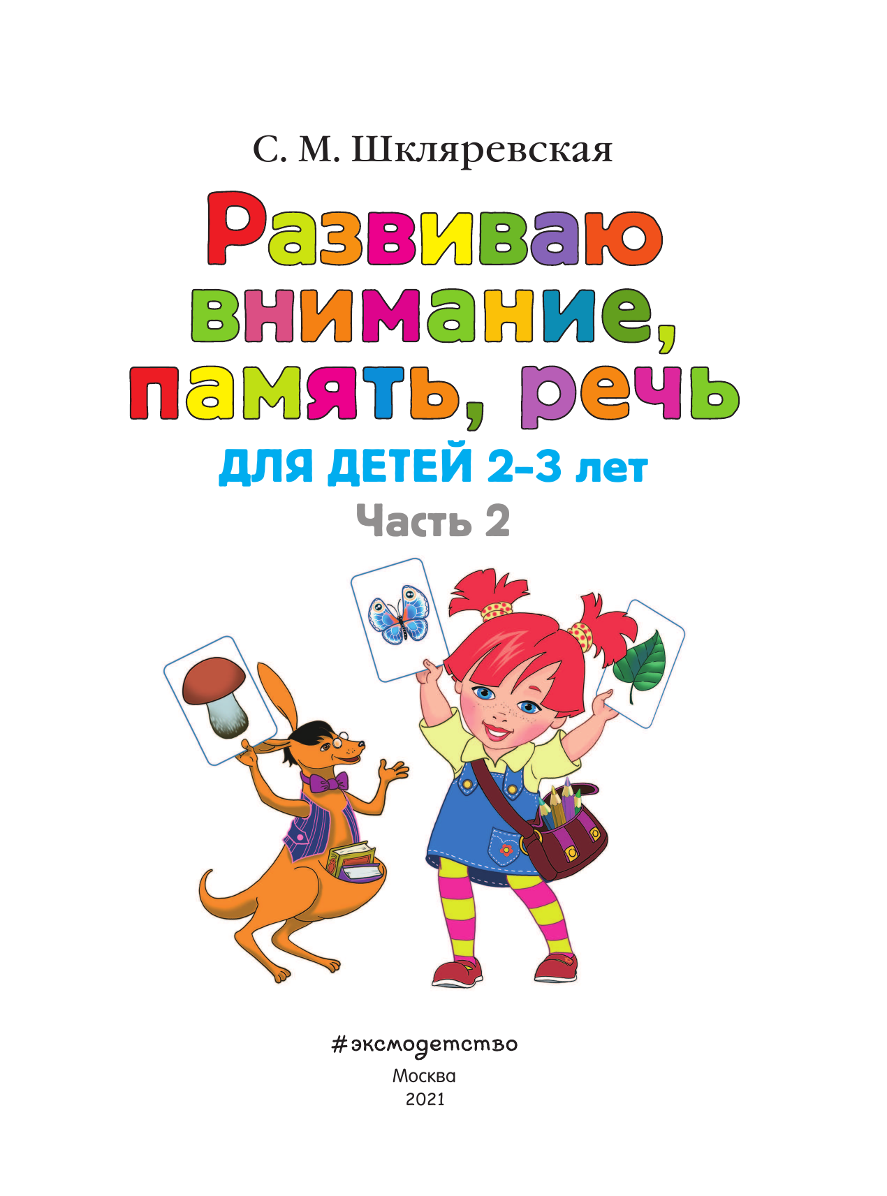 Развиваю внимание память речь. Для детей 2-3 лет. Часть 2 (Шкляревская Светлана Моисеевна); ООО "Издательство "Эксмо", 2019