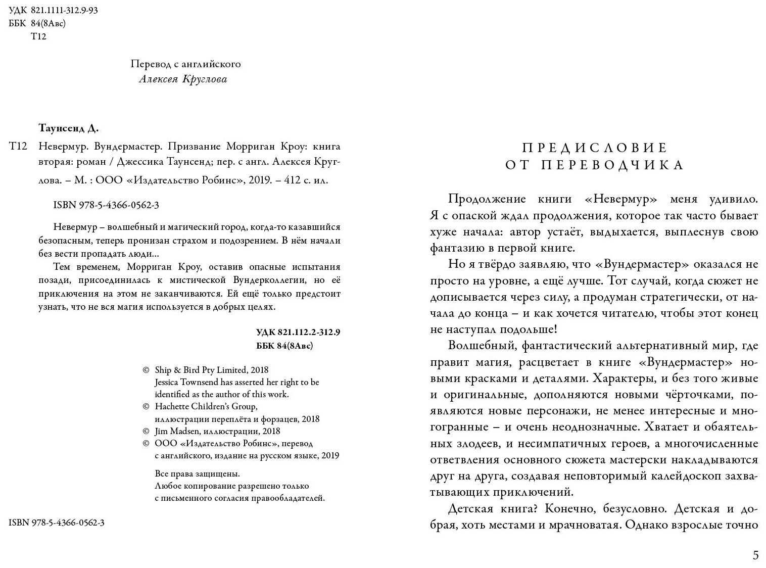 Невермур : трилогия. Книга 2. Вундермастер. Призвание Морриган Кроу : роман (Джессика Таунсенд); Робинс, 2018