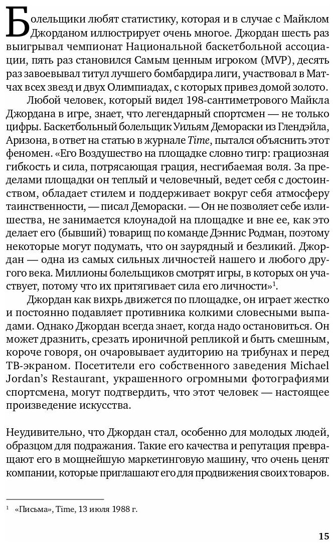 Для многих Майкл Джордан - легенда, выдающийся баскетболист, обладающий титулами и наградами, сыгравший огромную роль в популяризации спорта. Но мало кто понимает, как много трудностей выпало на его долю. Ничто не давалось ему легко, и он прежде всего человек, который упорно двигался к цели, нашел свое предназначение, в полной мере осознал свои сильные и слабые стороны. Его секрет успеха — упорный труд. Эта книга представляет собой историю жизни, карьеры и достижений, составленной автором из высказываний Джордана и дополненной многочисленными деталями, найденными в материалах прессы, радио и телевидения. Она будет интересна не только тем, кто хочет сделать карьеру в области спорта, но и всем, кто желает достичь выдающихся результатов в определенной области.