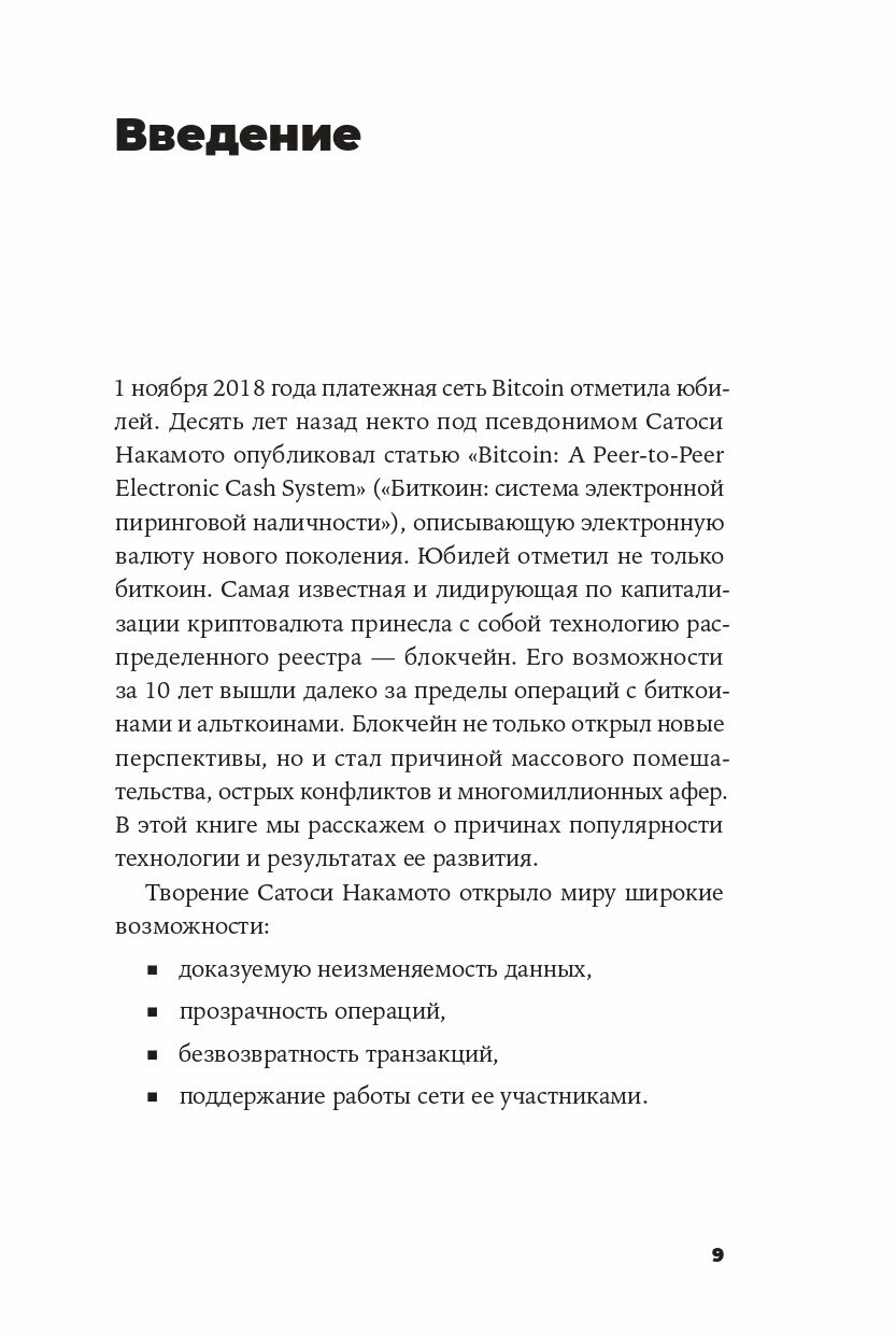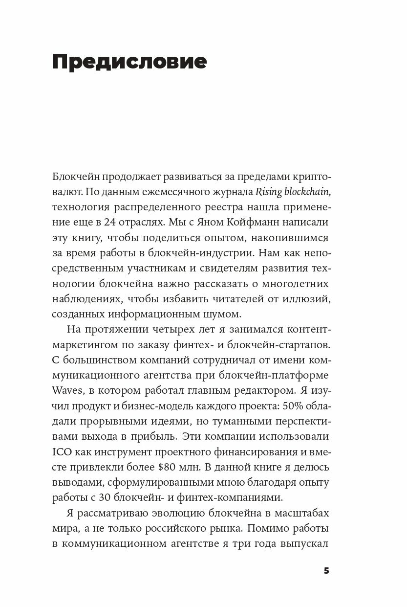 Александр Табернакулов, колумнист Forbes и эксперт в области блокчейн-индустрии, и Ян Койфманн, сооснователь и CEO блокчейн-платформы для управления электроэнергией NS, описывают все этапы создания и развития технологии блокчейна. Авторы рассказывают, почему блокчейн и сейчас вызывает огромный интерес у предпринимателей, разработчиков, ученых и энтузиастов и какие проекты на основе этой технологии могут быть успешны в будущем."