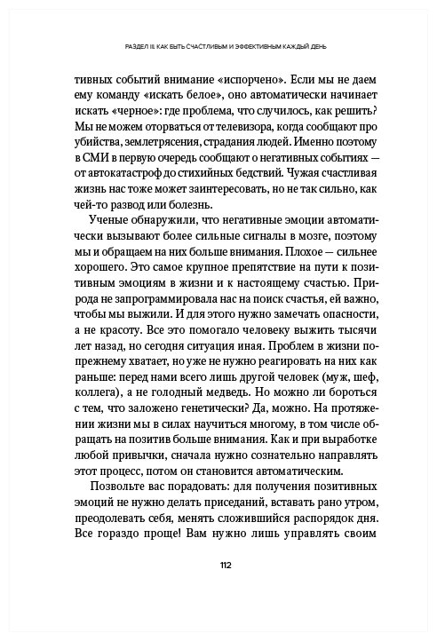 Лично мне очень понравилась данная книга. Прочитал её в промежутках между технической литературой, очень помогла взбодриться, пересмотреть некоторые взгляды на ежедневные рутинные действия. Не скажу, что в этой книге есть какая-то секретная информация, но то, что в ней написано, периодически необходимо перечитывать и внедрять. В основном речь о повседневных действиях, которые помогут чувствовать себя хорошо физически и эмоционально. Приятная и лёгкая книга, рекомендую всем, кому нравится литература подобного плана (психология, саморазвитие, тайм-менеджмент).