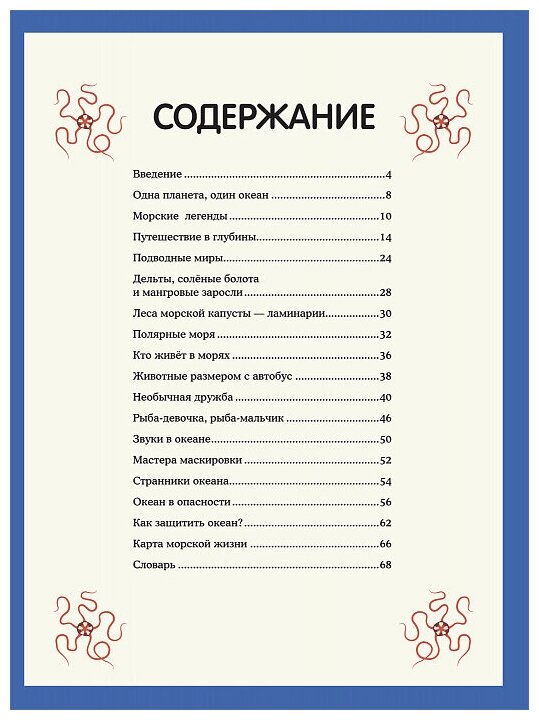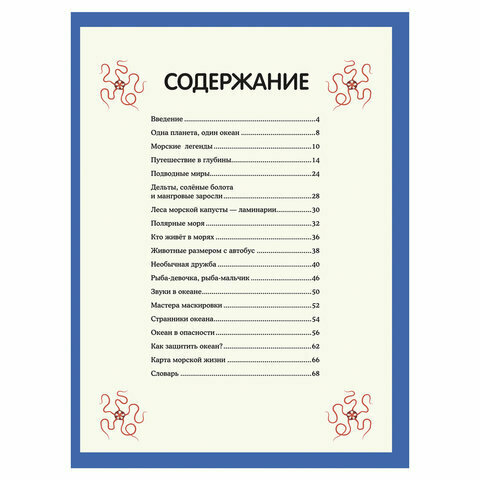 Из книги ты узнаешь о водных гигантах и карликах, о поведении стайных и одиночных рыб, о взаимовыгодном сотрудничестве морских животных и хитроумных приемах защиты от врагов. Тебе станет понятно, что такое пищевая цепь, чем питаются растения и животные, как рыбы подыскивают себе пару, для чего некоторые из них пересекают океан, почему не всегда заботятся о потомстве. Изучив проблемы океана, ты осознаешь, какой вред наносят ему люди и как можно участвовать в его защите, даже живя очень далеко от побережья.