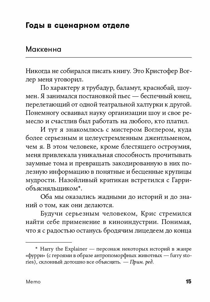 Яркий пример того, как на личном опыте мистер Воглер и мистер Маккенна создали \"Библию\" для сценаристов, которая очень выручила меня, когда дело дошло до написания сценариев в сфере, в которой я работаю. -