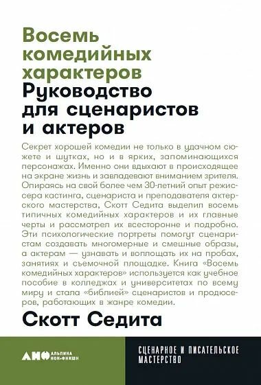 Восемь комедийных характеров: Руководство для сценаристов и актеров / Скотт Седита ; Пер. с англ. — 3-е изд. — М.: Альпина нон-фикшн, 2022. — 340 с.
