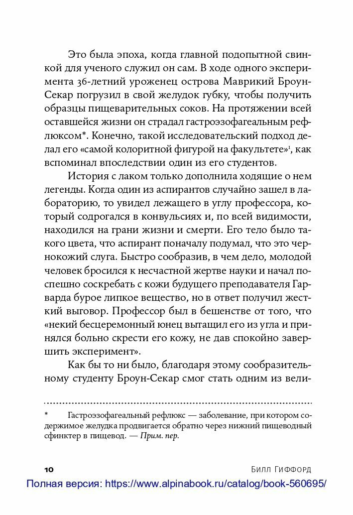 Цитата: "Ученые, с которыми вы познакомитесь в этой книге, придерживаются оптимистичного взгляда на будущее старения. Они считают, что в настоящее время наука стоит на пороге важных открытий в понимании процесса старения. Скоро человечество научится изменять его таким образом, чтобы позволить себе жить более долгой и здоровой жизнью". Билл Гиффорд О чем книга "Стареть не обязательно! Будь вечно молодым (или сделай для этого всё возможное)": тема продления жизни очень интересовала людей во все времена. И в наши дни она находится в фокусе ведущих ученых мира. Как суметь прожить максимально долго и даже в глубокой старости сохранять энергию, подвижность, жизнелюбие и здравый ум? Какие изменения с возрастом происходят с нашим организмом? Что за недуги коварно подкарауливают пожилых людей и что с этим можно сделать? Какие средства продления жизни уже существуют и сможет ли наука в ближайшем будущем обеспечить радикальное продление человеческой жизни? Увлекательно, с добрым юмором и примерами из жизни автор рассказывает о результатах научных исследований в этой области и их практическом применении. Почему книга "Стареть не обязательно! Будь вечно молодым (или сделай для этого всё возможное)" достойна прочтения. С процессами старения рано или поздно сталкиваются все. Важно понимать, какие именно недуги нас подстерегают и чем именно может быть вызвана их активизация. Автор рассказывает о множестве исследований, проводившихся в разное время от древности до наших дней, и рассказывает о выводах, сделанных учеными. Вы узнаете, что возраст действительно не приговор: автор поделится с вами своими мыслями о том, как можно прожить дольше, сохраняя при этом физическую активность и ясность мысли. Автор: Билл Гиффорд — известный американский научный журналист и публицист, пишущий редактор Outside magazine, Wired, Businessweek, Men’s Health, Men’s Journal, Slate и The New Republic. Он ведет активный образ жизни и обожает свою мать, которой вот-вот исполнится 100 лет и которая начинает каждый свой день со сладкой сдобной булочки. Билл собирается прожить не меньше нее и рекомендует всем следовать его примеру, доказывая, что с возрастом превращаться в старую развалину совершенно не обязательно!