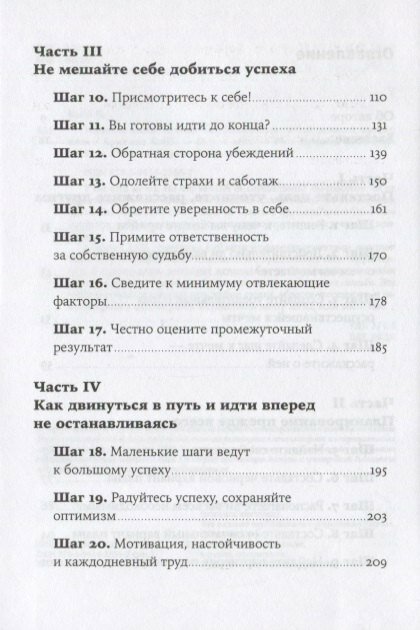 3. Каждый из этих шагов также расписан четко и по делу, понятными словами. Западные писатели любят рассусоливать, но в данной книге такого нет и в помине. На чтение каждого шага (несколько страничек крупным шрифтом) и выполнение упражнений у меня ушло максимум 1 час, в среднем, это полчаса. И времени почти не отнимает, и каждый день делаешь небольшой шажок к цели.