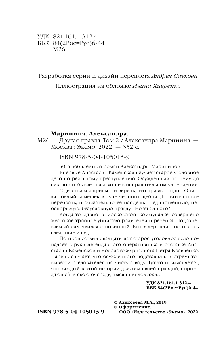 Книга: Другая правда. Том 2 (Александра Борисовна Маринина); Эксмо, 2021