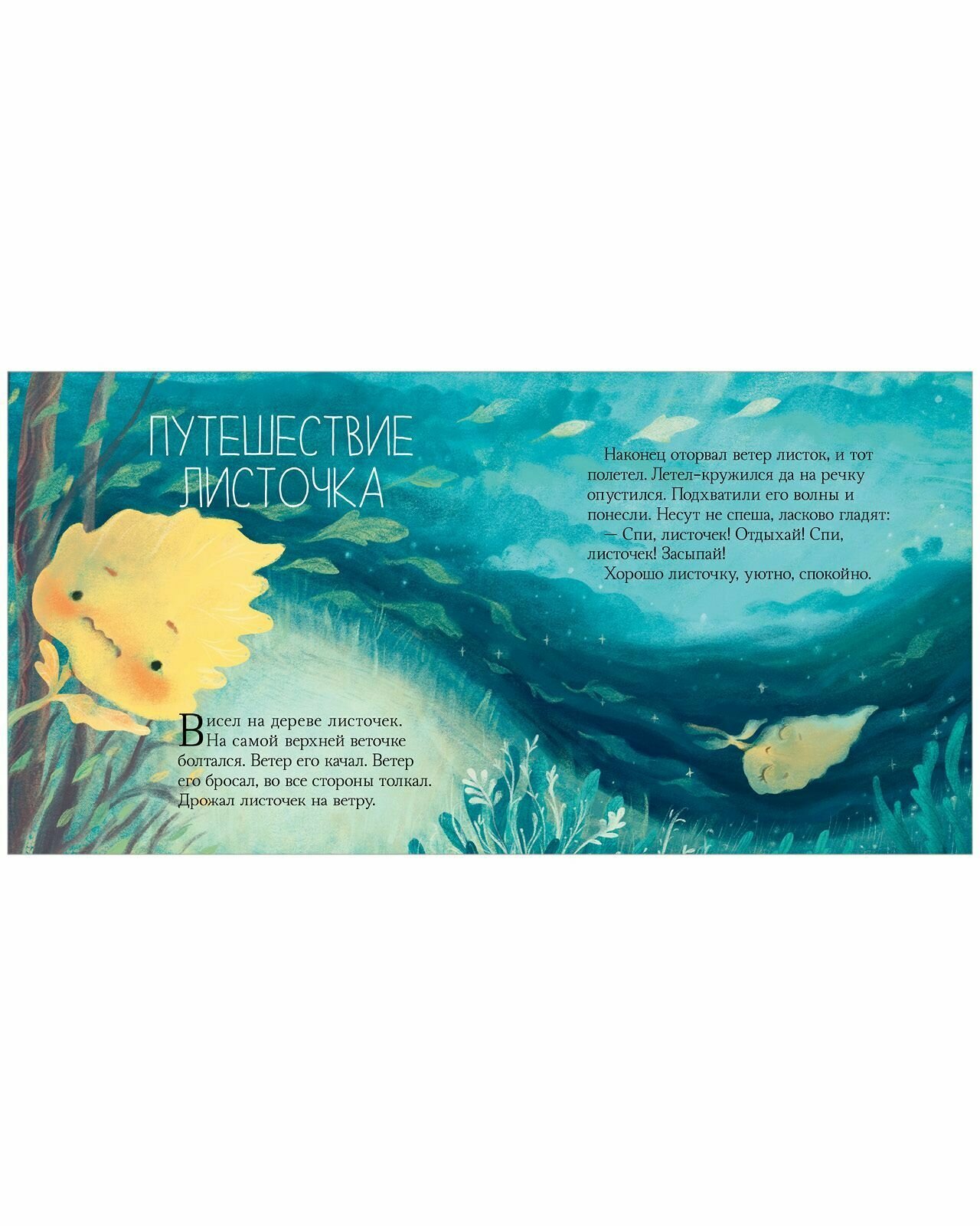 Сначала в сказке «Проворный поросенок» никак не засыпает очаровательный розовенький герой — не лежат его ушки на подушке. На помощь приходят разные животные, гладят его, и никак не удержаться забавному пятачку, чтобы не уснуть. Сказка «Приключения листочка» расскажет о листочке, который даже во время своих приключений умудряется заснуть. А «Слон и бабочка» поведает о том, что если слон заснет, то разбудить его просто невозможно, разве что только вздремнуть вместе с ним, как это сделала маленькая бабочка.