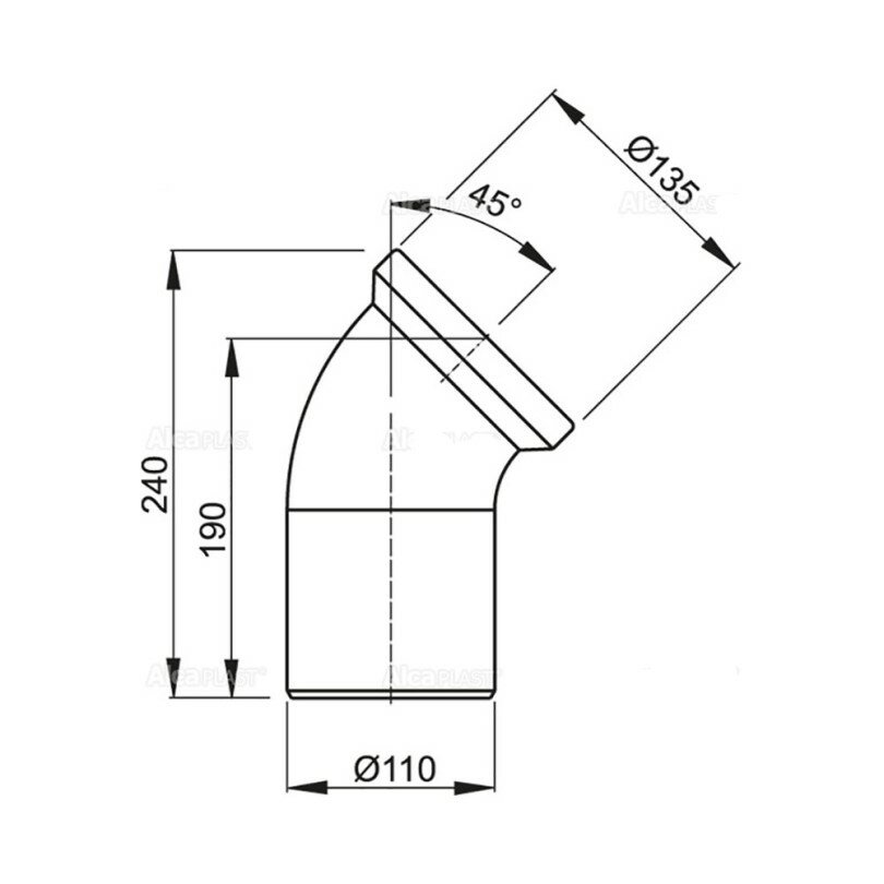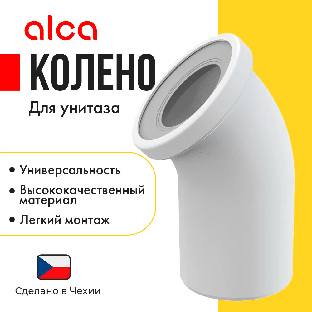 AlcaPlast представляет собой колено для унитаза с углом наклона в 45 °. Данная модель предназначена для подключения унитаза к канализационному стоку. Колено имеет прямое подключение к канализационному стоку диаметром 110 ммОписание Область применения: Для подключения унитаза к канализационному стоку Свойства: Диаметр отверстия для подключения стока – 110 мм Угол наклона 45 ° Материал: полипропилен