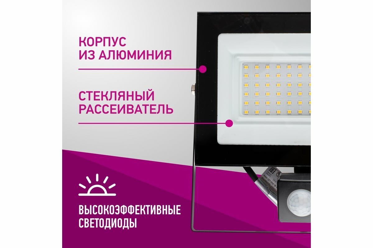 Освещение Онлайт 61985 Светодиодный прожектор Онлайт OFL-02-SNRА имеет сертификат IP65 и надежно защищен от пыли и влаги. Он предназначен для наружного освещения и оснащен встроенным датчиком движения с регулировкой радиуса действия, времени отключения и уровня освещенности. Компактный алюминиевый корпус с увеличенной площадью рассеивания обеспечивает эффективный теплоотвод.