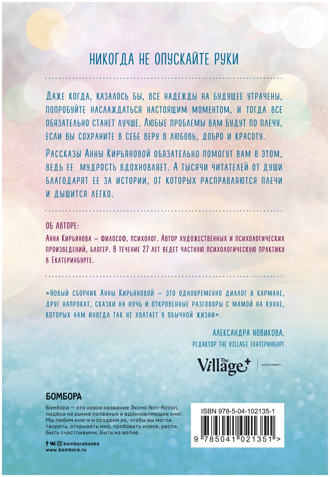 Красота в глазах смотрящего, и мир вокруг таков, каковым люди сами хотят его видеть. В нем есть проблемы, обиды, суета и невзгоды, а есть радость, любовь и добро. Чем наполнить свою жизнь, решаем только мы, и рассказы Анны Кирьяновой в очередной раз убеждают нас в этом. Любовь и добро возвращаются бумерангом, главное — научиться делиться ими с другими.