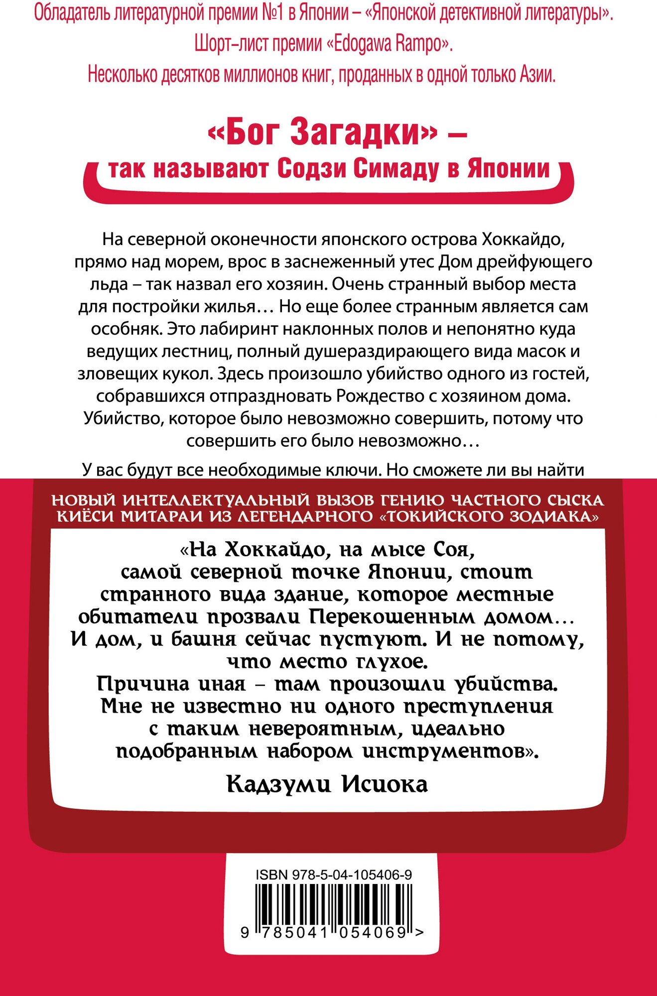 На северной оконечности японского острова Хоккайдо, прямо над морем, врос в заснеженный утес Дом дрейфующего льда - так назвал его хозяин. Очень странный выбор места для постройки жилья… Но еще более странным является сам особняк. Это лабиринт наклонных полов и непонятно куда ведущих лестниц, полный душераздирающего вида масок и зловещих кукол. Здесь произошло убийство одного из гостей, собравшихся отпраздновать Рождество с хозяином дома. Убийство, которое было невозможно совершить, потому что совершить его было невозможно… У вас будут все необходимые ключи. Но сможете ли вы найти отгадку прежде, чем это сделают сыщики?