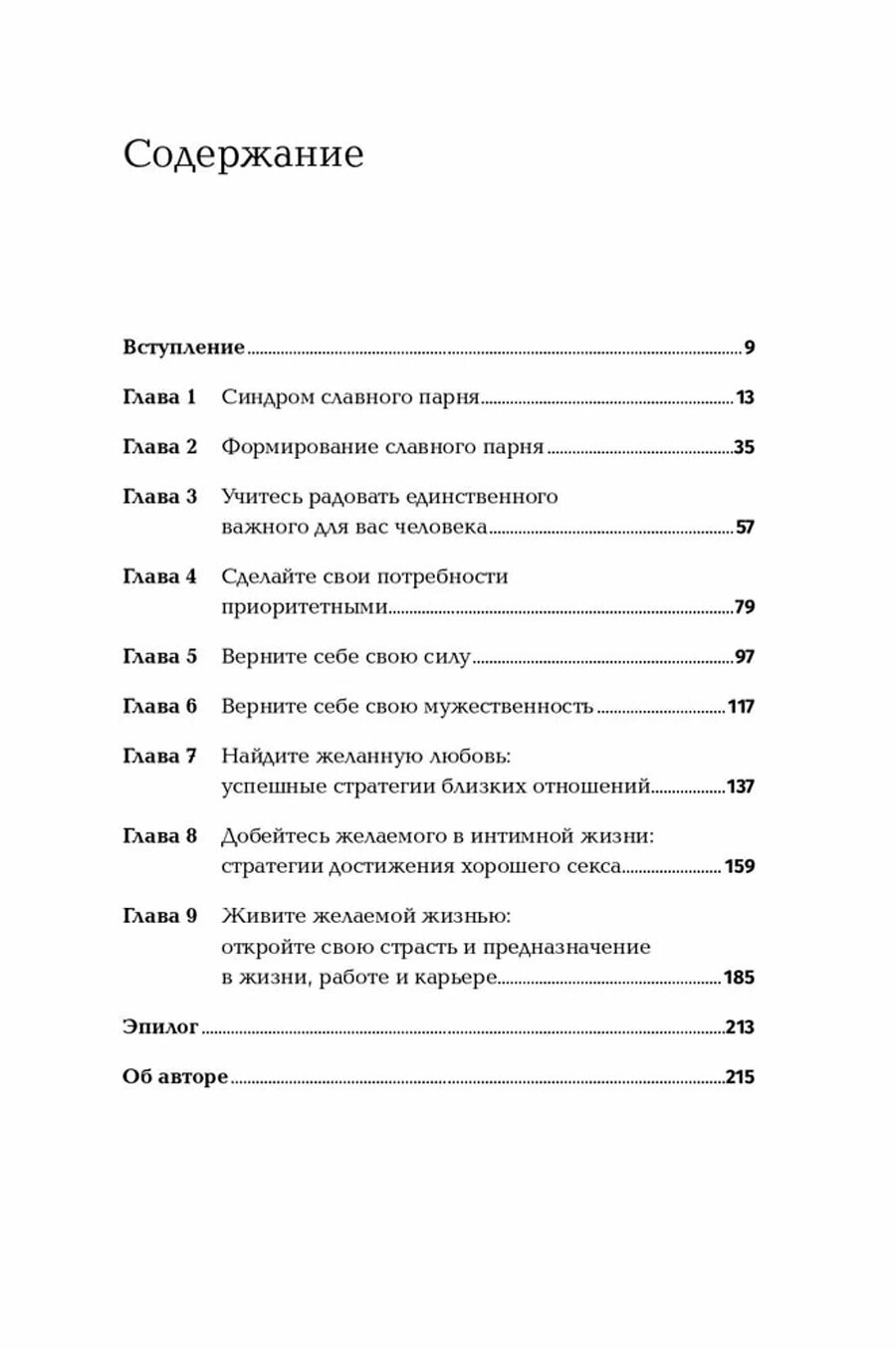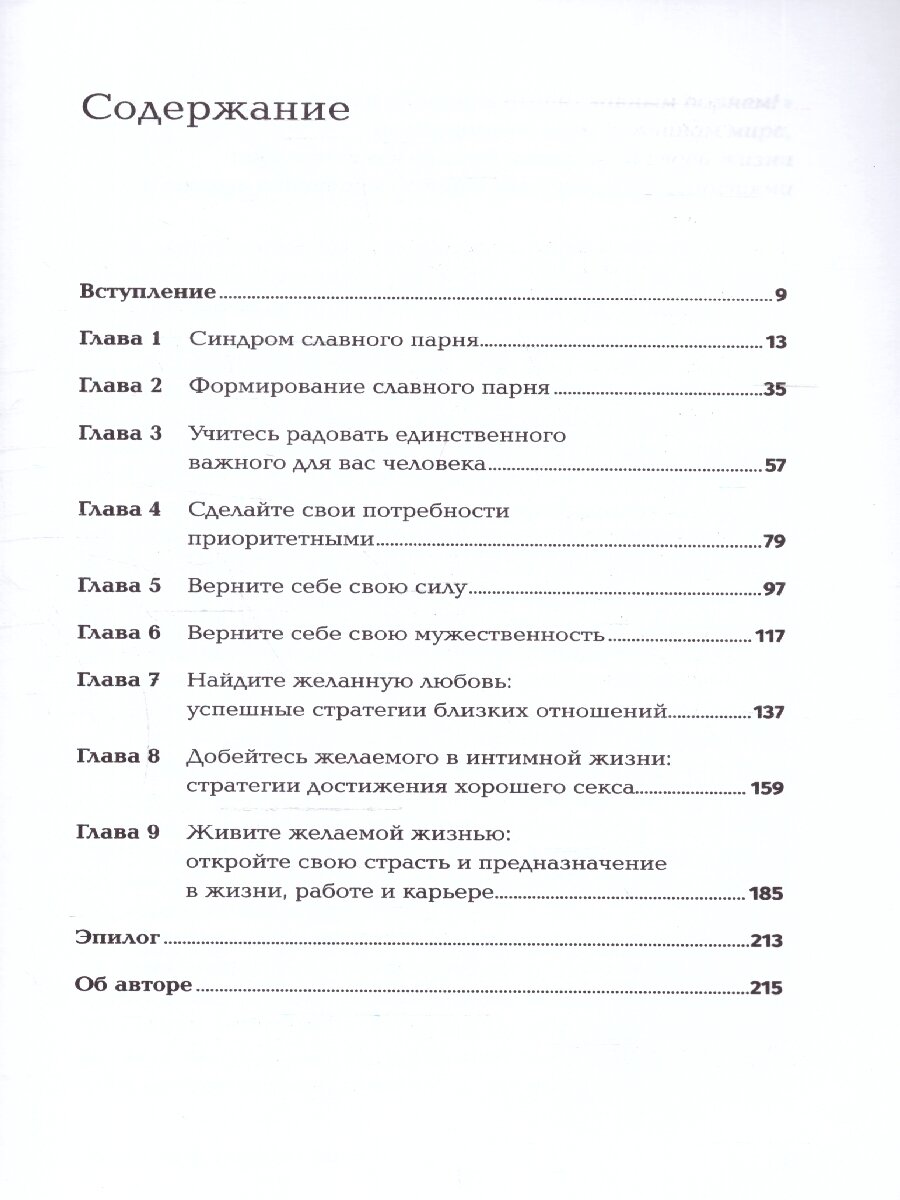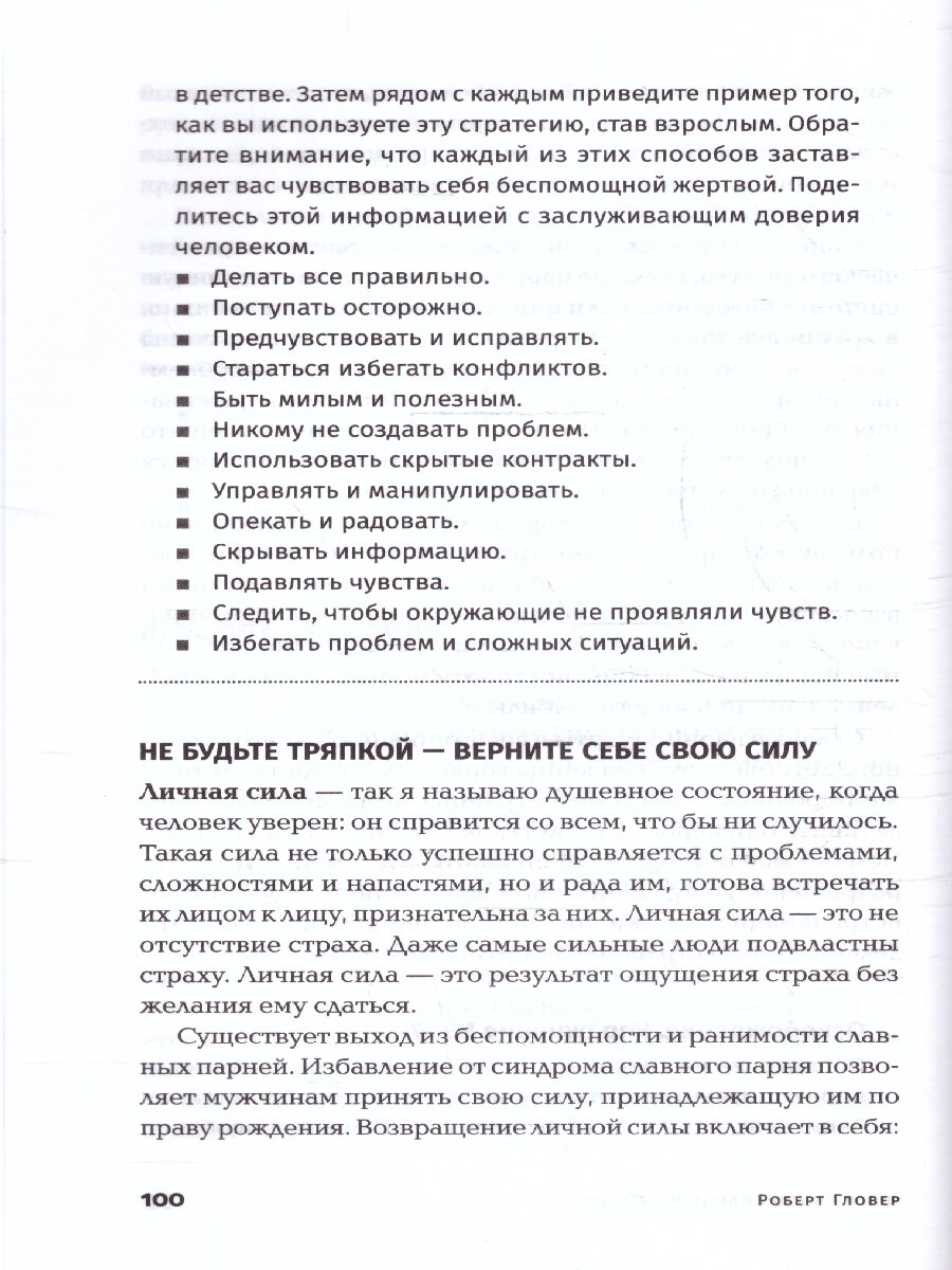 Эта книга предлагает действенную программу исцеления от синдрома славного парня. Это не просто несколько интересных идей, которые можно попробовать и забыть. Книга представляет собой серь¬езный вызов всему, за что, по мнению славных парней, их любят и что позволяет им жить без проблем.