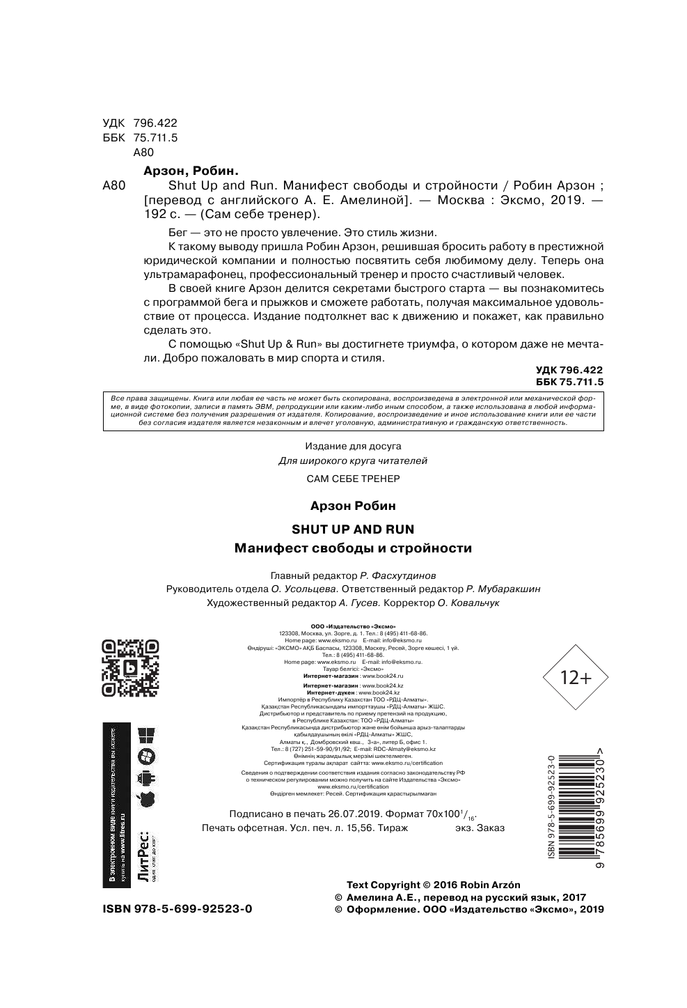 Shut Up and Run. Манифест свободы и стройности (Арзон Робин); Эксмо, 2019