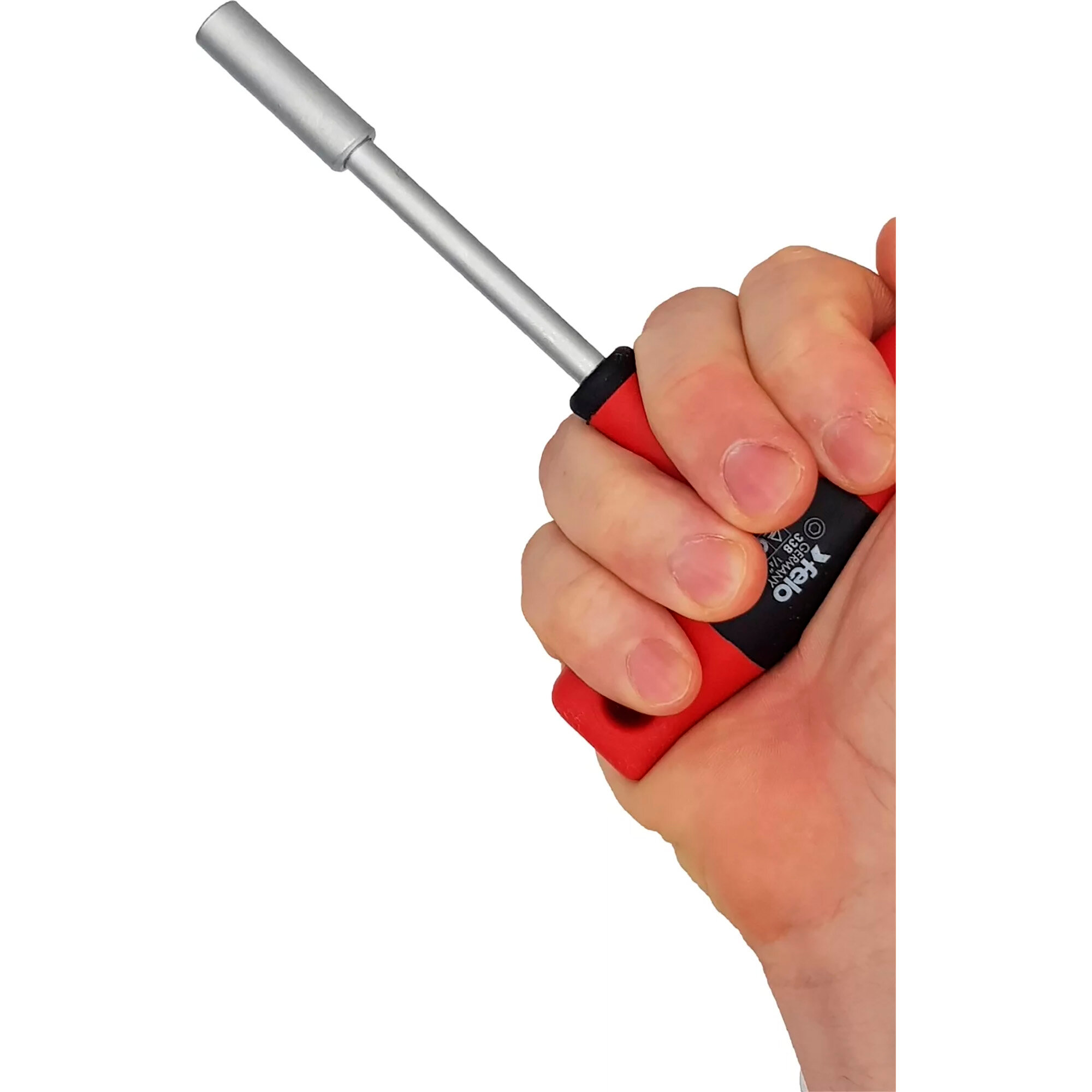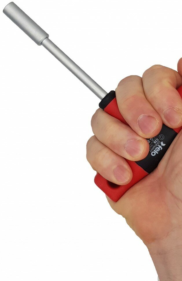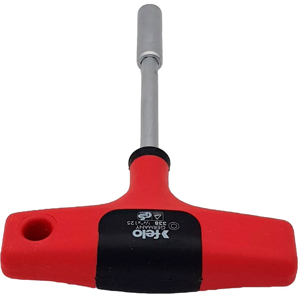 Т-образный ключ под биты 1/4". Покрытие рукоятки Soft-Grip обеспечивает удобство в работе. Стержень выполнен из закалённой в масле стали.