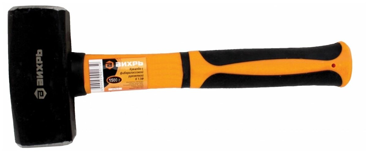 Кувалда 1.5 кг., фибергласовая рукоятка, Вихрь предназначена для силовых работ. Рукоять длиной 230 мм подойдет для замаха обеими руками. Квадратный стальной боек справляется с любыми деконструкционными работами. Имеется защита у основания бойка.