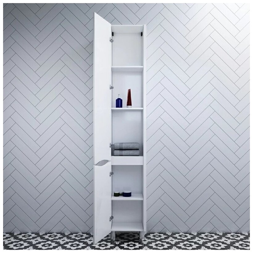 Шкаф пенал AM PM Like 35 с двумя распашными дверцами (петли слева), для использования в ванных комнатах с повышенной влажностью.