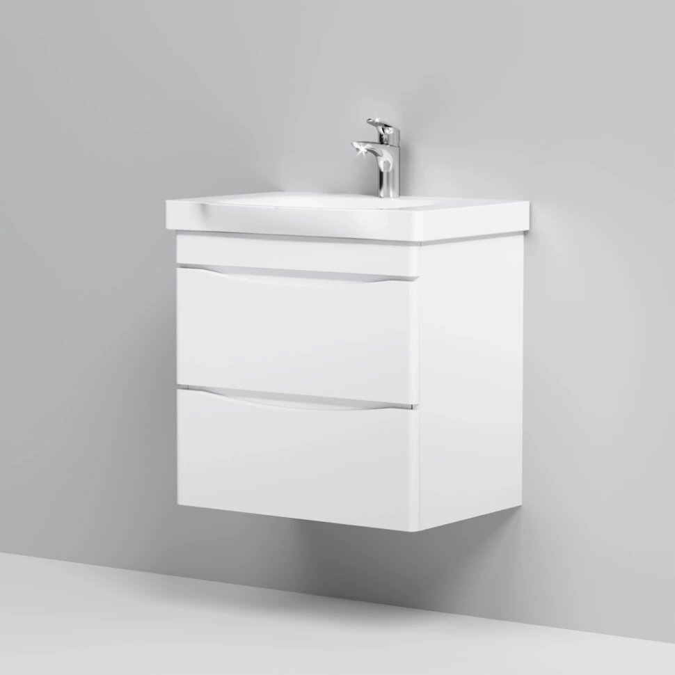 Подвесная тумба под раковину AM PM Like 65 с двумя выдвижными ящиками. Дизайн разработан английским агентством DanelonMeroni. Утонченный модный стиль Dynamic Organic. Удобные ручки, интегрированные в фасад, повторяют изгиб формы раковины. Предназначена для использования в ванных комнатах с повышенной влажностью.