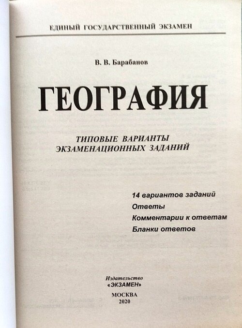 ЕГЭ 2020. География. 14 вариантов. Типовые варианты экзаменационных заданий от разработчиков ЕГЭ (Барабанов Вадим Владимирович); Экзамен, 2020