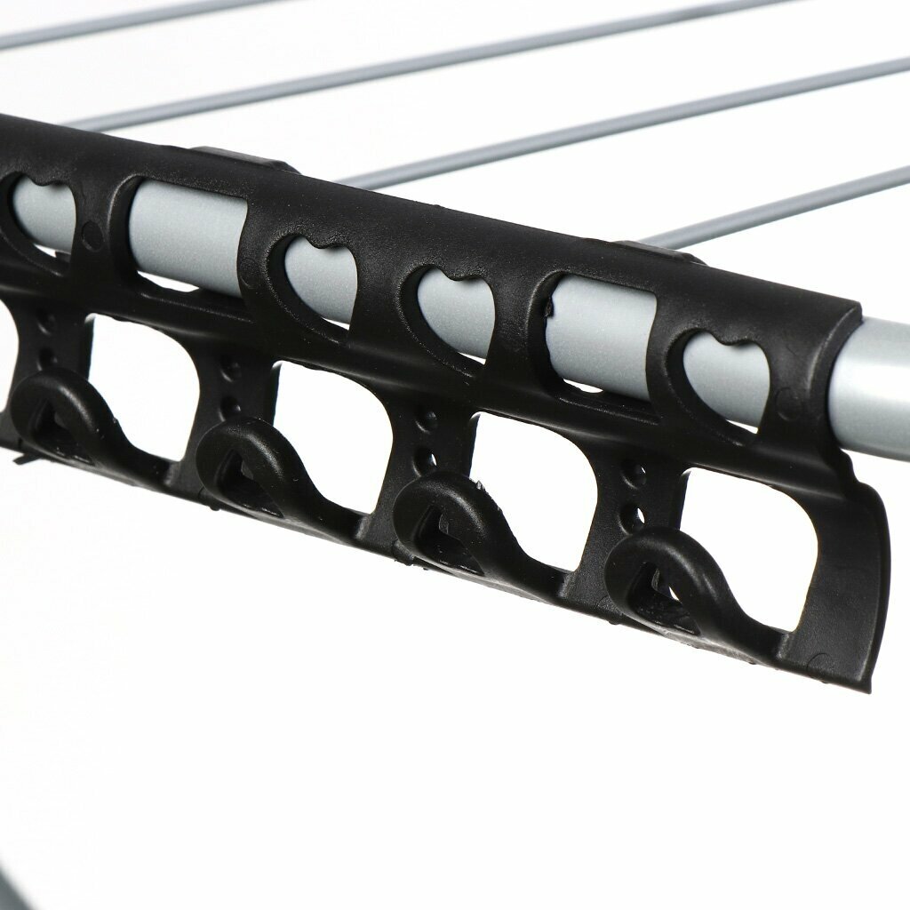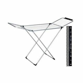 | Особенности | Стальная конструкция, окрашенная порошковой краской. Пластиковые крючки для одежды. Полезная длина сушки 17,5 метров. Размеры (в разложенном виде) 171х65х110 см. Размеры (в сложенном виде) 130.5х23х59 см. Сушилка не предназначена для сушки ковров, покрывал и т.д. |