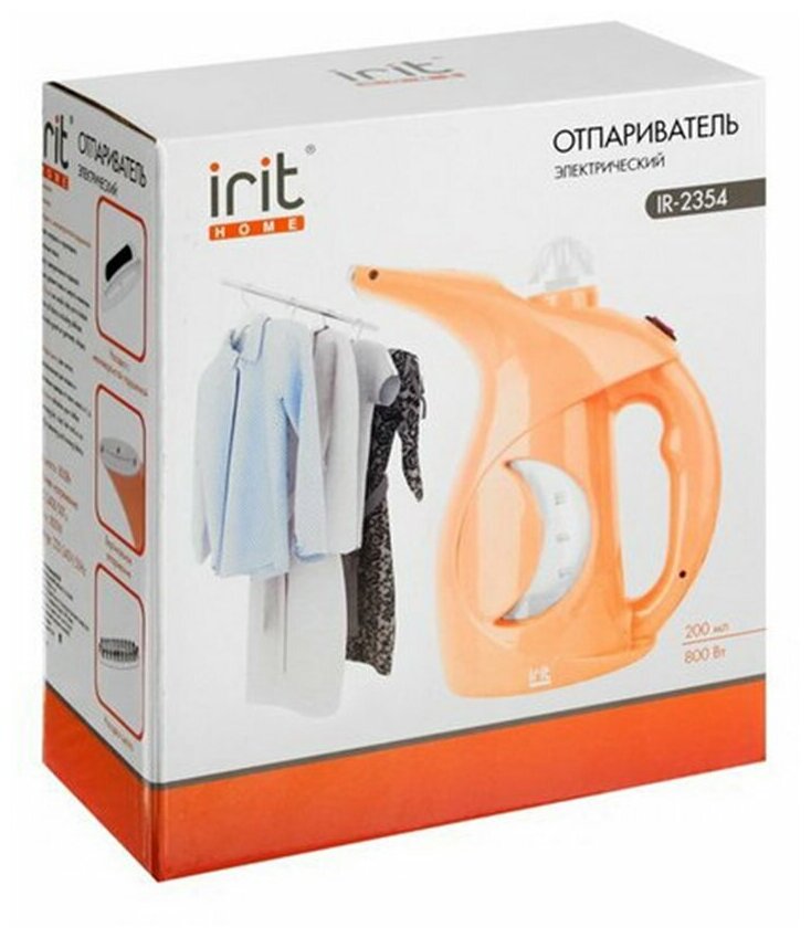 Отпариватель Irit – необычный дизайн и эффективная работа! Отпариватель имеет необходимый комплект насадок, позволяющий привести в порядок мебель, одежду, мягкие игрушки, а также покрывала, подушки и многое другое. Он удаляет неприятные запахи, сложные пятна, бактерии, при этом сохраняя ткань в первостепенном виде, не повреждая ее. Мощность данной паровой щетки составляет 800 Вт, а сила парового удара 20 г/мин.